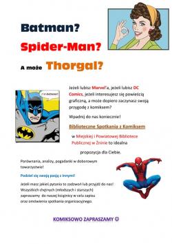 Zapraszamy wszystkich chętnych na Biblioteczne spotkania z Komiksem w naszej bibliotece. Szczegóły poniżej.