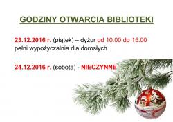 Godziny otwarcia biblioteki w okresie świątecznym