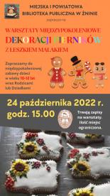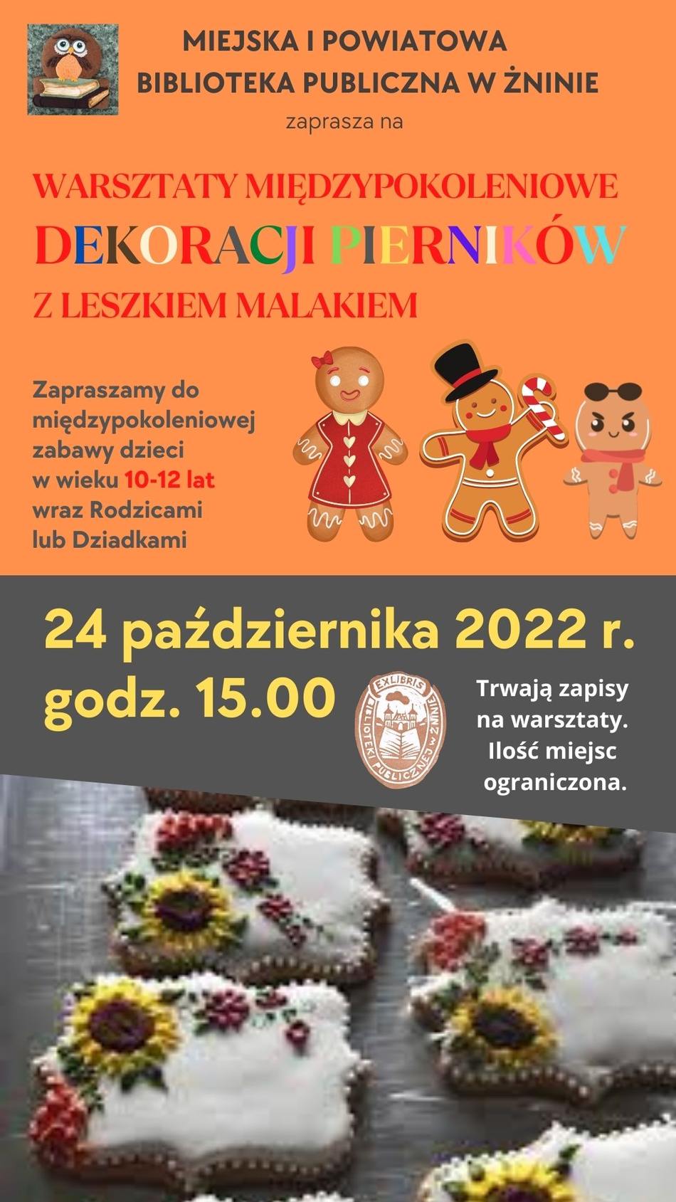 Zapraszamy na warsztaty międzypokoleniowe z dekoracji pierników z Leszkiem Malakiem, właścicielem Cukierni ALMA w Żninie. Odbędą się one 24 października 2022 r. o godz. 15.00. Lista miejsc ograniczona, trwają więc zapisy! -