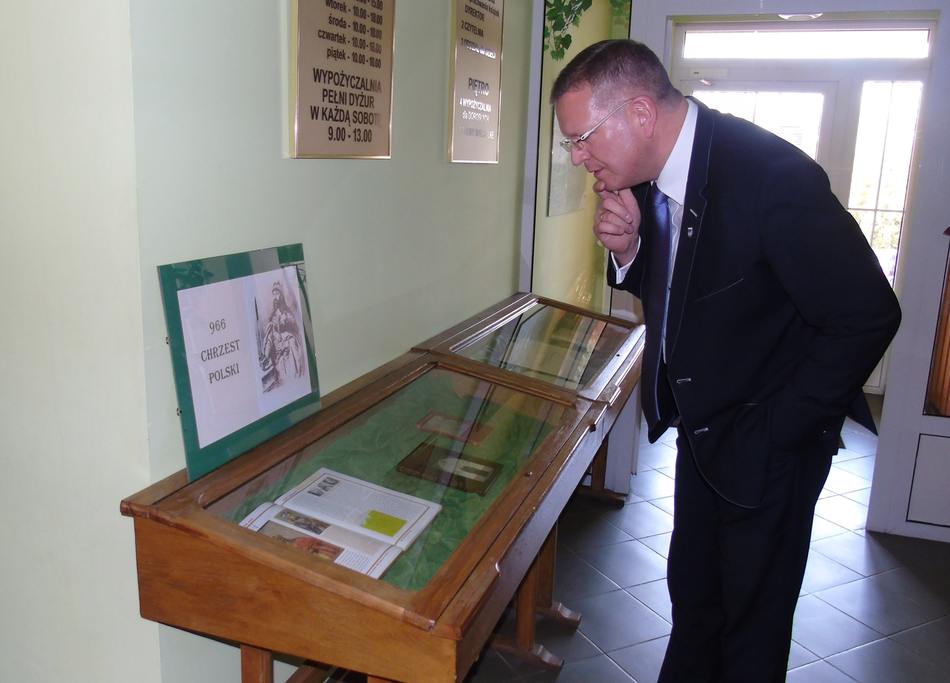 W związku z obchodami 1050-lecia Chrztu Polski nasza biblioteka przygotowała mini wystawę pt. "Chrzest Polski". Można się na niej zapoznać z pozycjami książkowymi przedstawiajacymi osobę Mieszka I oraz opisujące ważne wydarzenie dla Polski jakim był Chrzest Polski. W piątek 15 kwietnia, po wykładzie prof. UAM Zbyszko Górczaka pt. "Chrzest Mieszka I", który to wykład zainaugurował żnińskie obchody 1050-lecia Chrztu Polski, naszą bibliotekę odwiedził i wystawę obejrzał Burmistrz Żnina Robert Luchowski. -