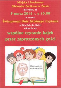 9 marca 2016 r. o 10.00 odbędzie się wspólne czytanie bajek przez zaproszonych gości.