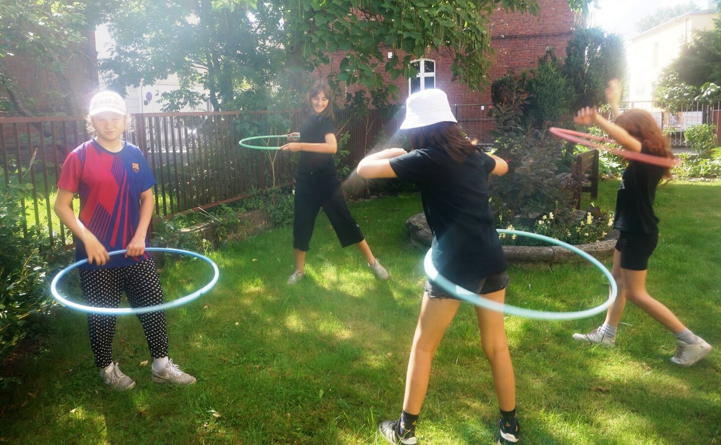 Po skończonym spektaklu nie mogło zabraknąć zajęć ruchowych w naszym ogródku bibliotecznym.