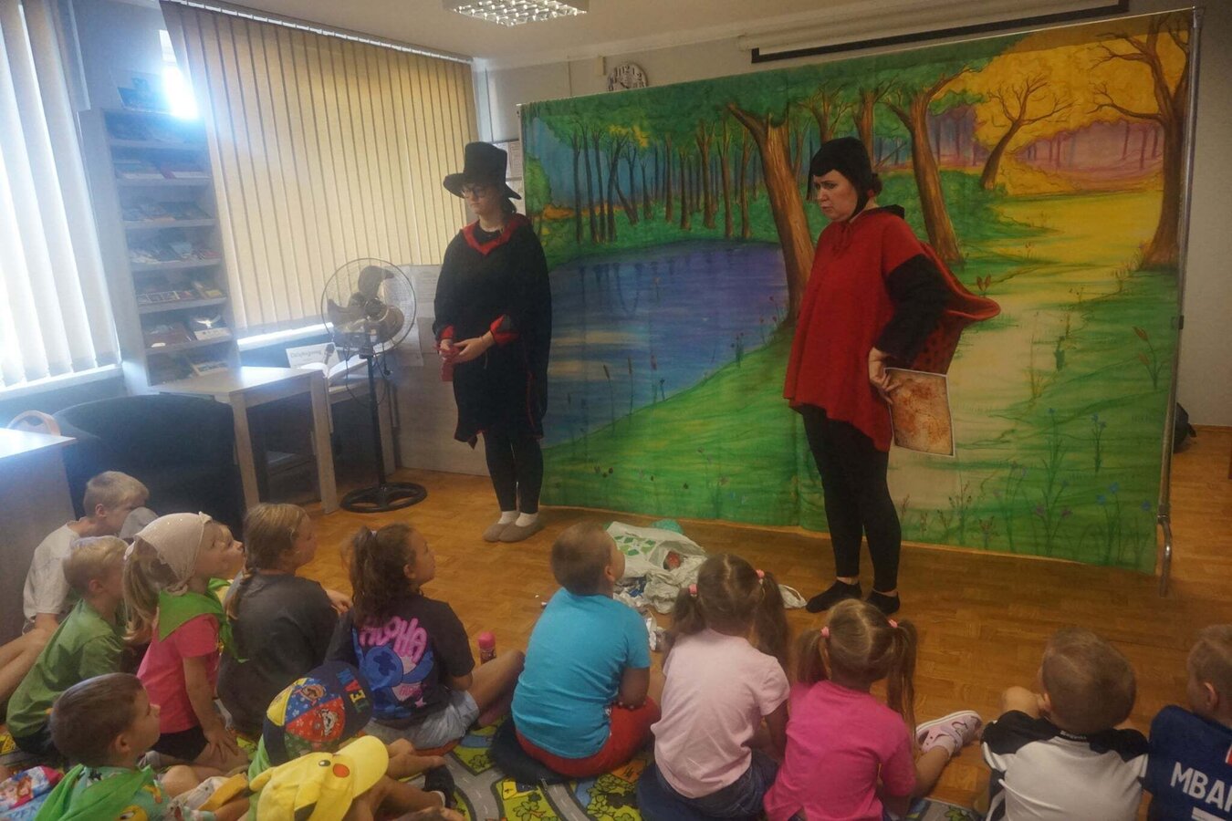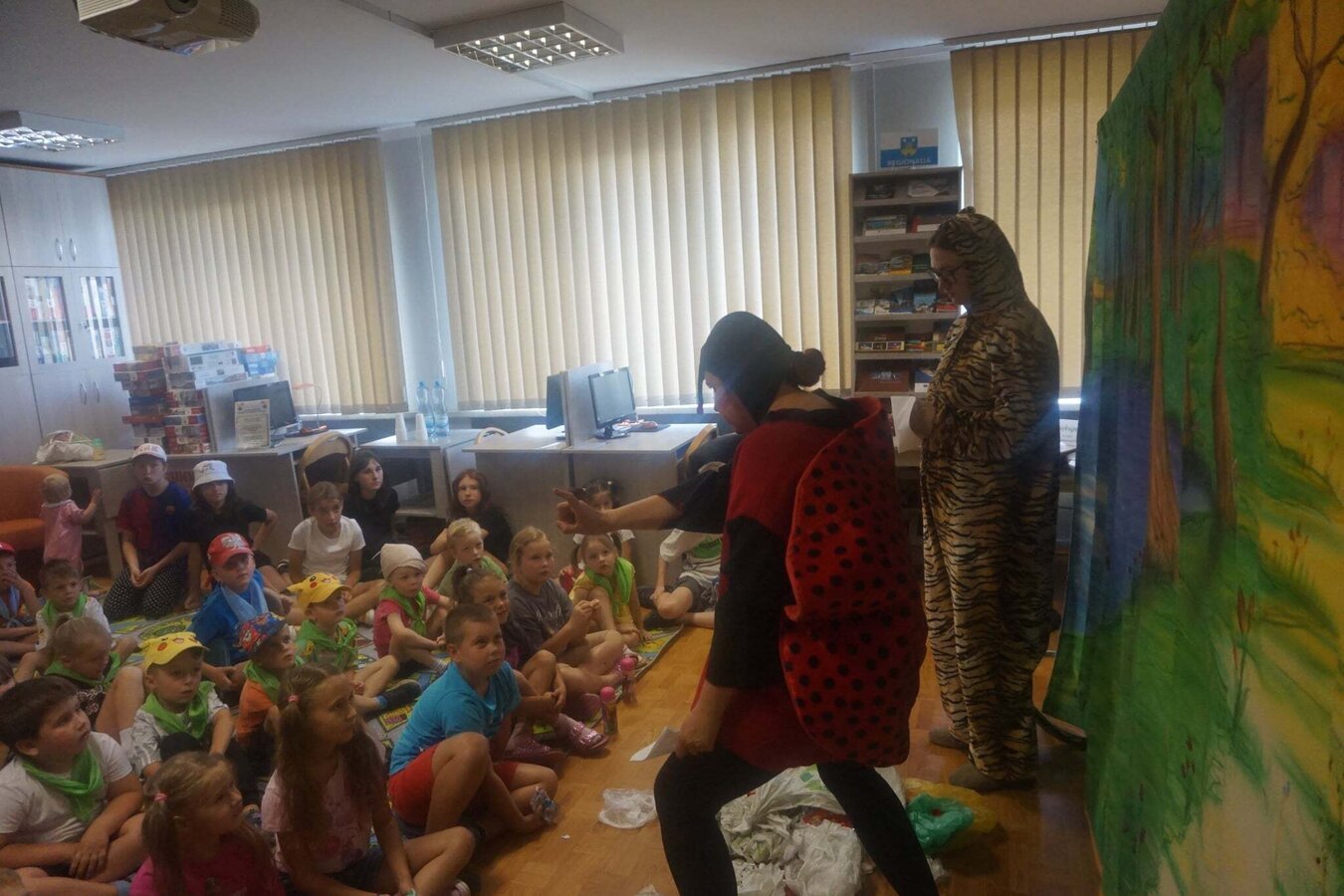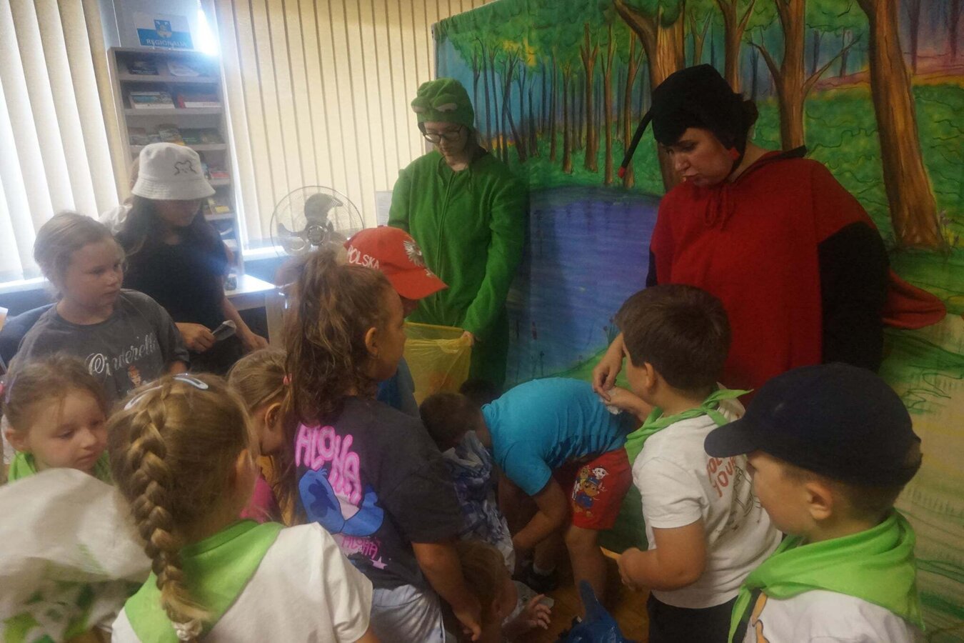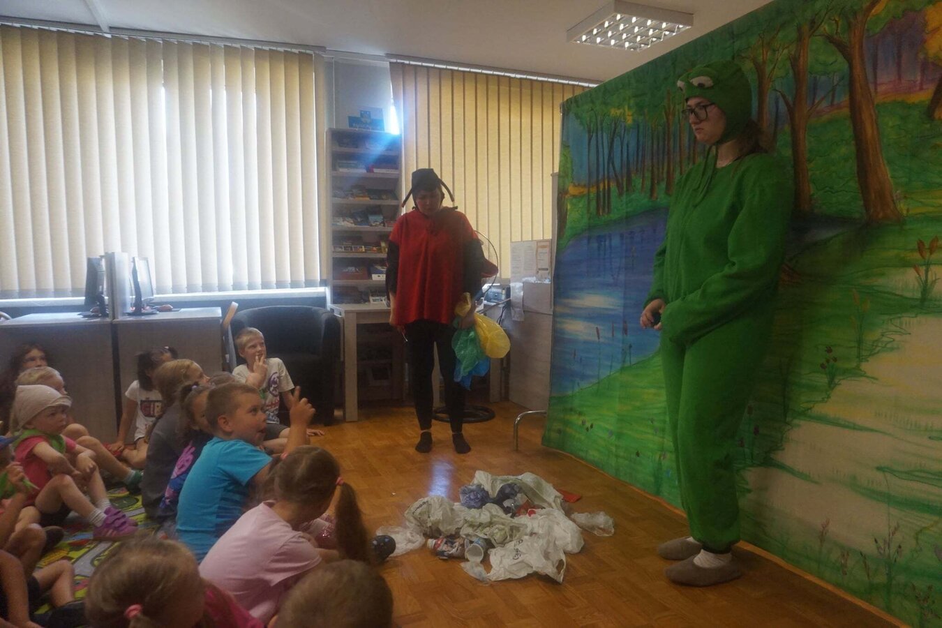 Za nami kolejne udane zajęcia wakacyjne w bibliotece. Dzisiaj (19 sierpnia) w murach naszej biblioteki gościliśmy Teatr Edukacji i Profilaktyki Maska z Krakowa, który wystawił spektakl pt. „Uczą króla dzieci segregacji śmieci”.