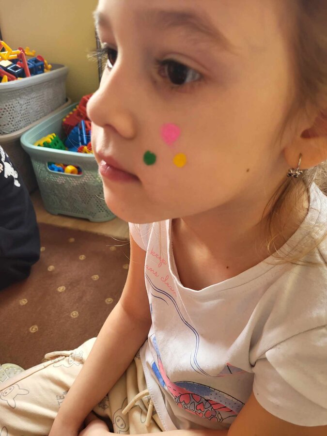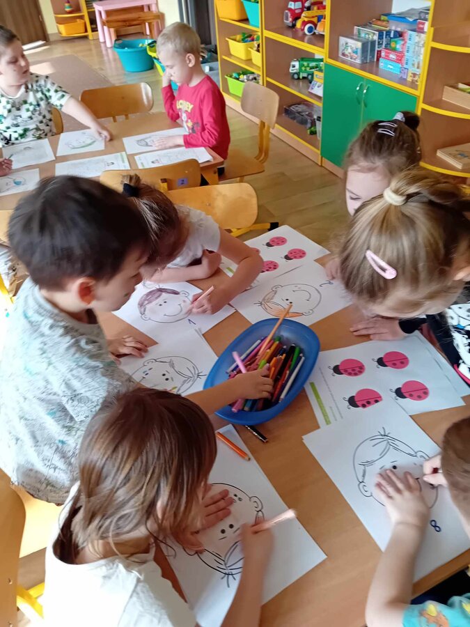 Buzie przedszkolaków, również ozdobiły piękne kolorowe piegi. Nie zabrakło wesołej zabawy i zaśpiewania piosenki o piegach oraz rozwiązywania zagadek.