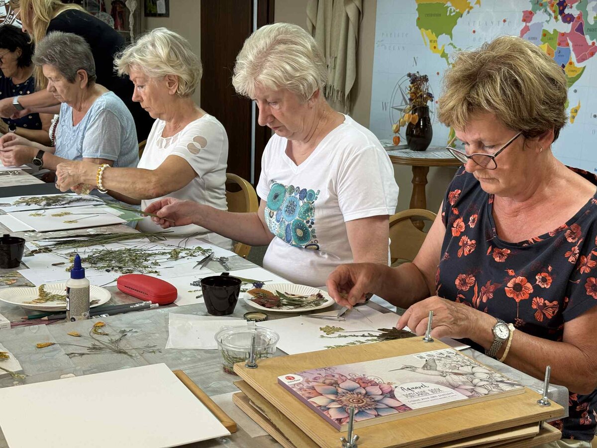 Przyniesione przez panią Izę publikację wprowadziły nas w temat tworzenia trwałych dekoracji, takich jak bukiety, wianki i kompozycje, wykorzystując przy tym naturalnie zasuszone rośliny. Razem za poradą prowadzącej udało nam się stworzyć oryginalne projekty płaskich obrazów, które będą stanowiły idealną pamiątkę lub prezent dla miłośników natury i stylu boho. Za dwa tygodnie będziemy kończyć nasze dzieła.