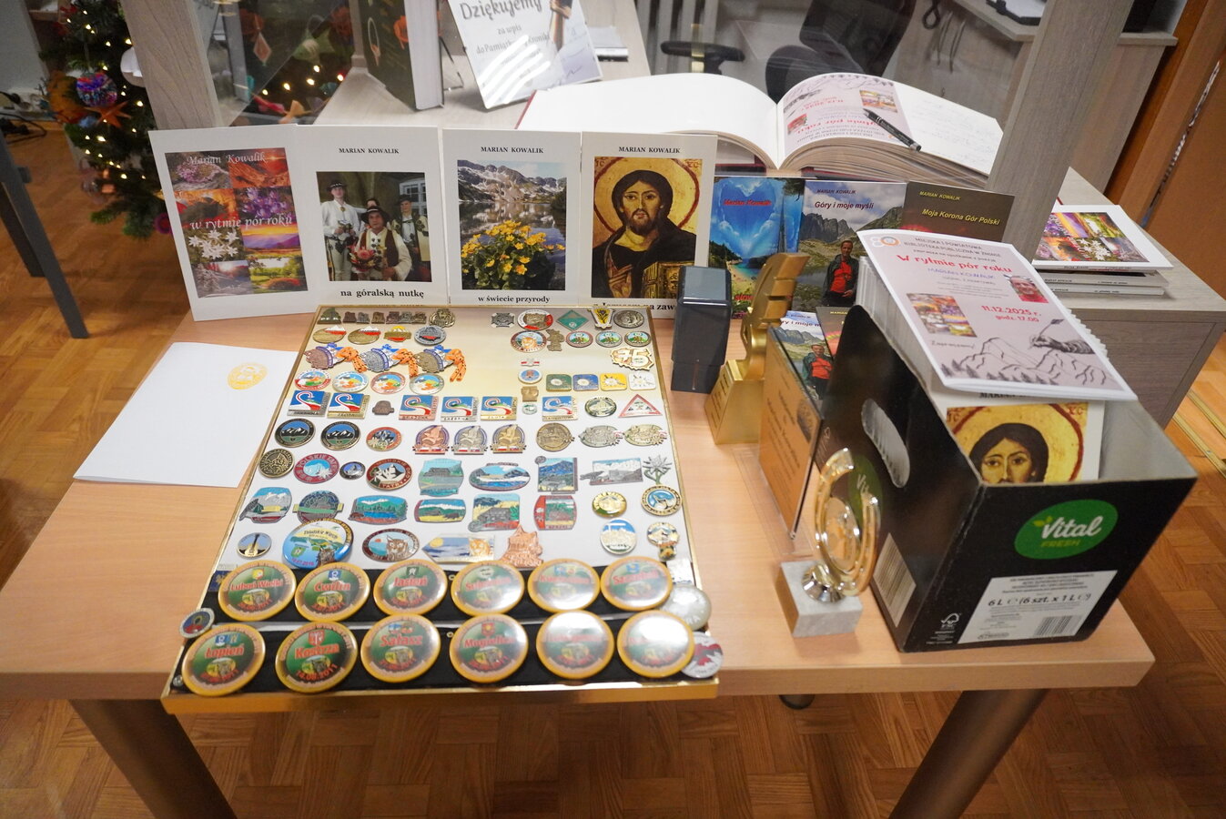 Spotkaniu towarzyszyła wystawa tomików wierszy Mariana Kowalika, przyznanych mu nagród, medali i wyróżnień oraz odznak Zdobywcy Korony Gór Polski.