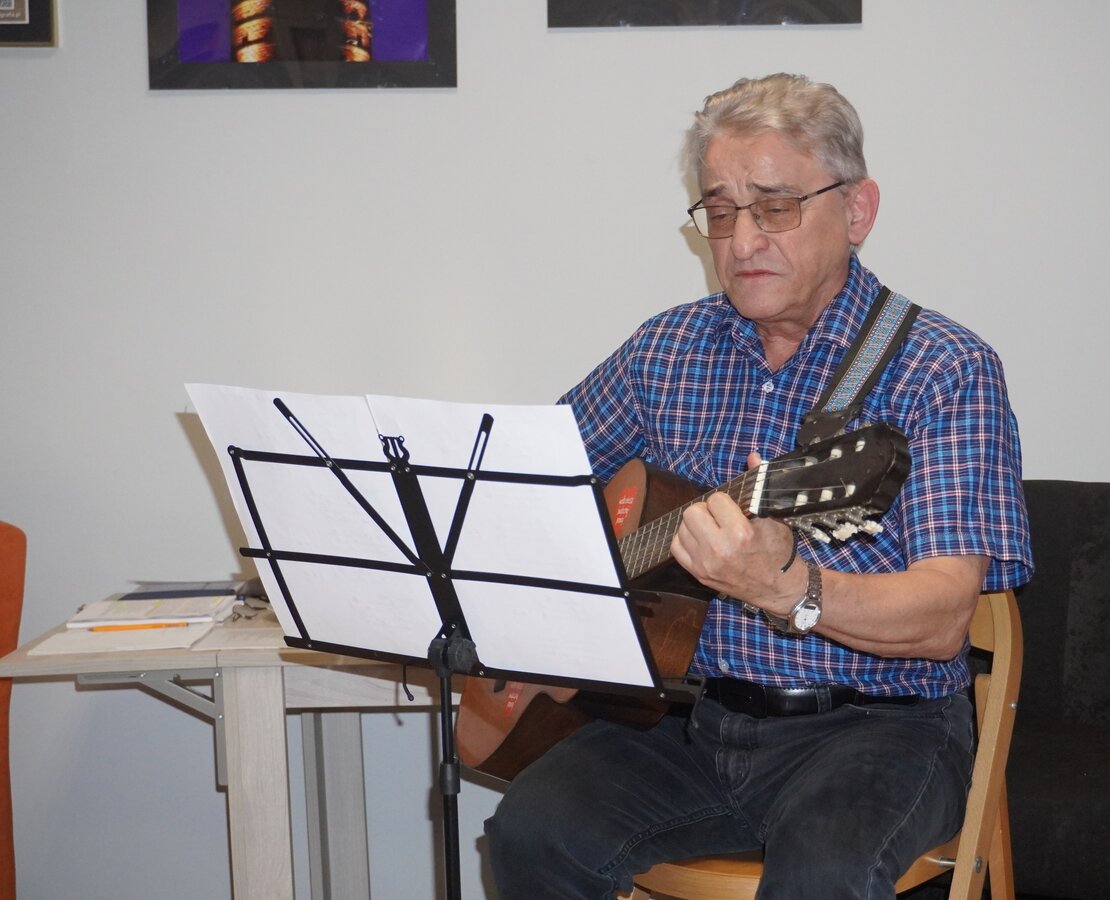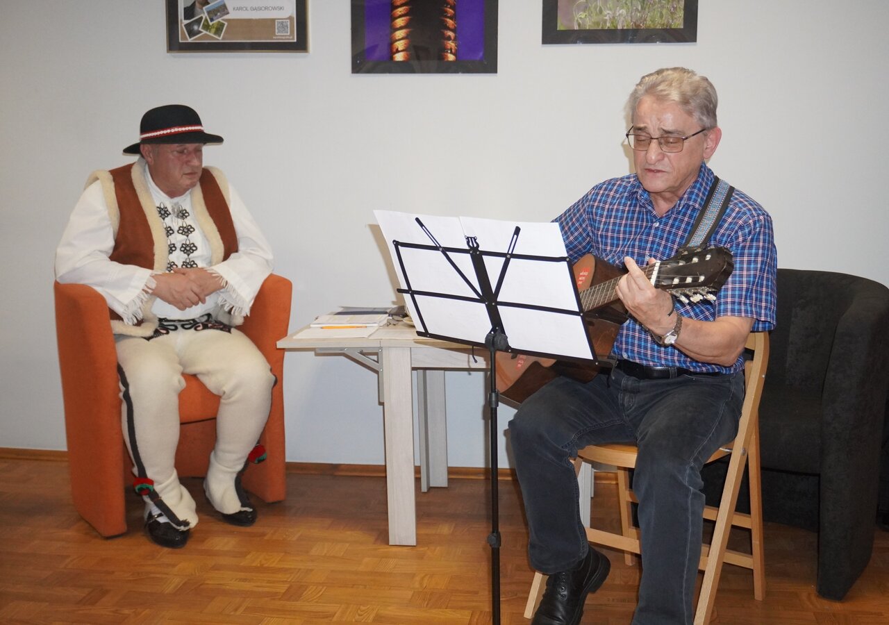 Spotkanie autorskie pt. „Na góralską nutę” z Marianem Kowalikiem poprowadził jego przyjaciel i również pasjonat gór – Sławomir Chojnacki ze Żnina, który przy akompaniamencie gitary zaśpiewał dwie piosenki autorstwa pana Mariana.