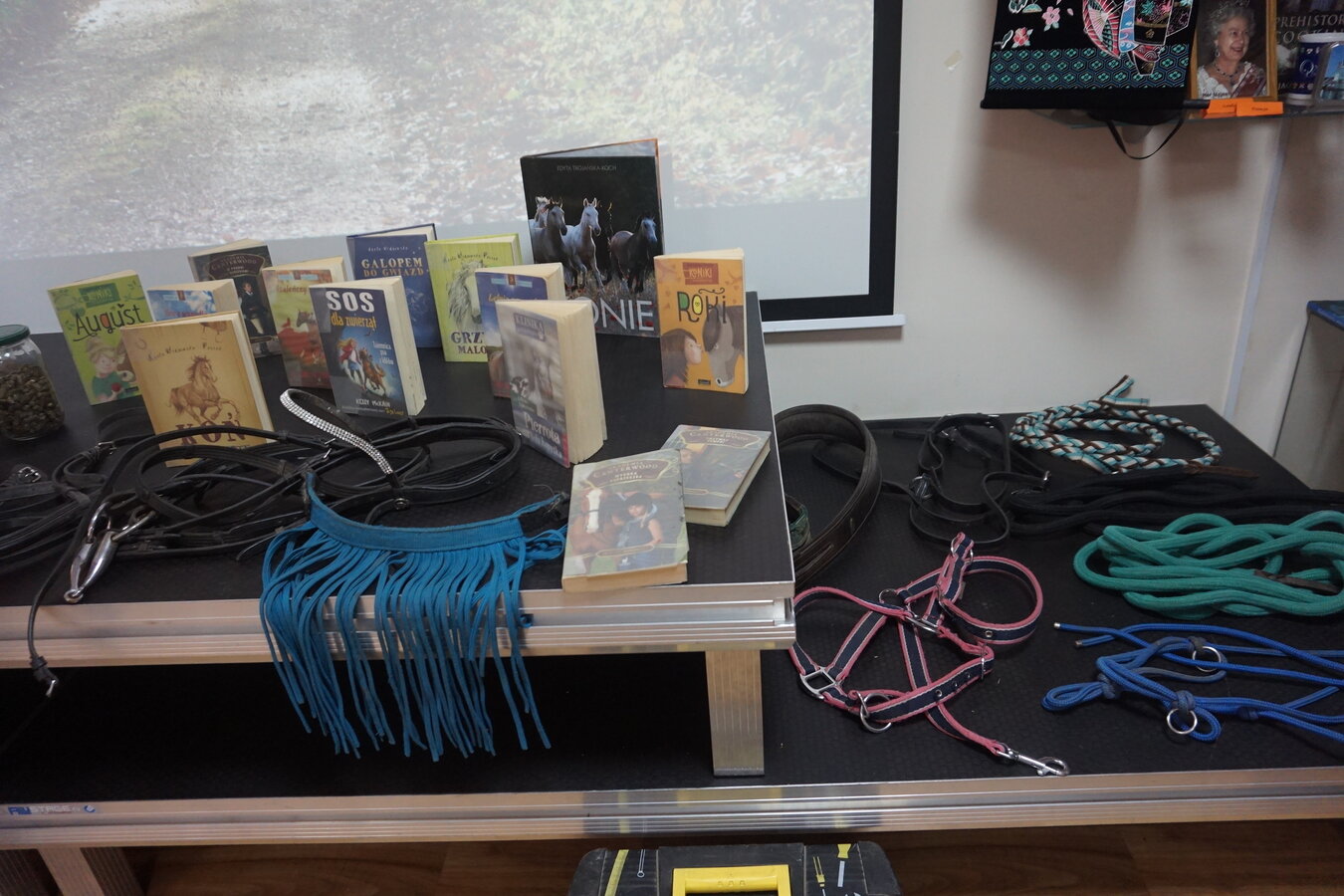 Panie przywiozły ze sobą drewnianego konia Mariana, który był dużą atrakcją oraz inne gadżety wykorzystywane przy pielęgnacji koni, czy też używane do jeździectwa. Dzieci miały również okazję zobaczyć, co jedzą konie.