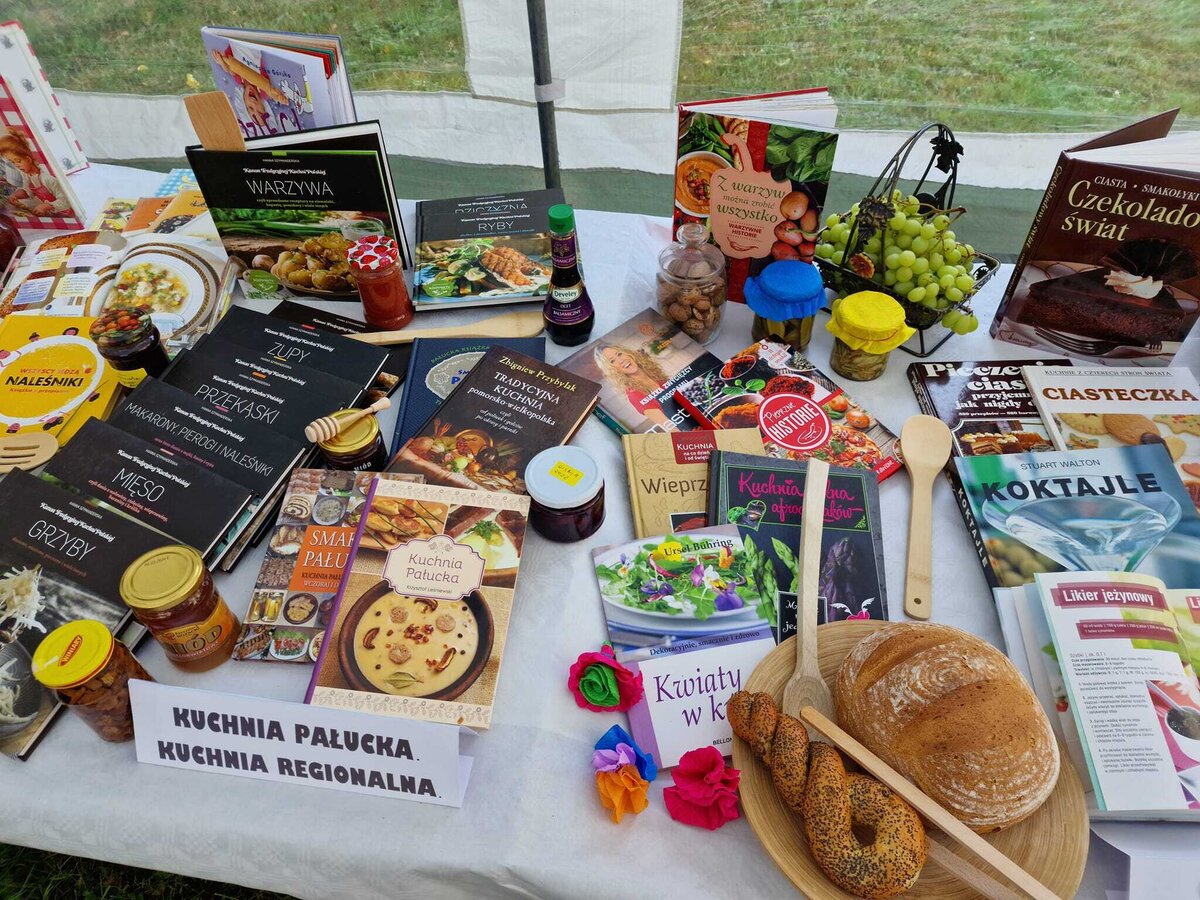 Książnica zaprezentowała swoje bogate zbiory z tematyką festiwalu związane. Jako współorganizator wydarzenia Miejska I Powiatowa Biblioteka Publiczna w Żninie ufundowała nagrodę w postaci Krasomówczej Karty wraz z koszem upominkowym za Objawienie Krasomówcze. Dyrektor biblioteki Pani Beata Czaczyk zasłużoną nagrodę wręczyła pani Agacie Szymańskiej ze Żnina, która objawiła się jako talent krasomówczy opisując poetycko nasze pałuckie kluchy na pyrach. Gratulujemy talentu krasomówczego.