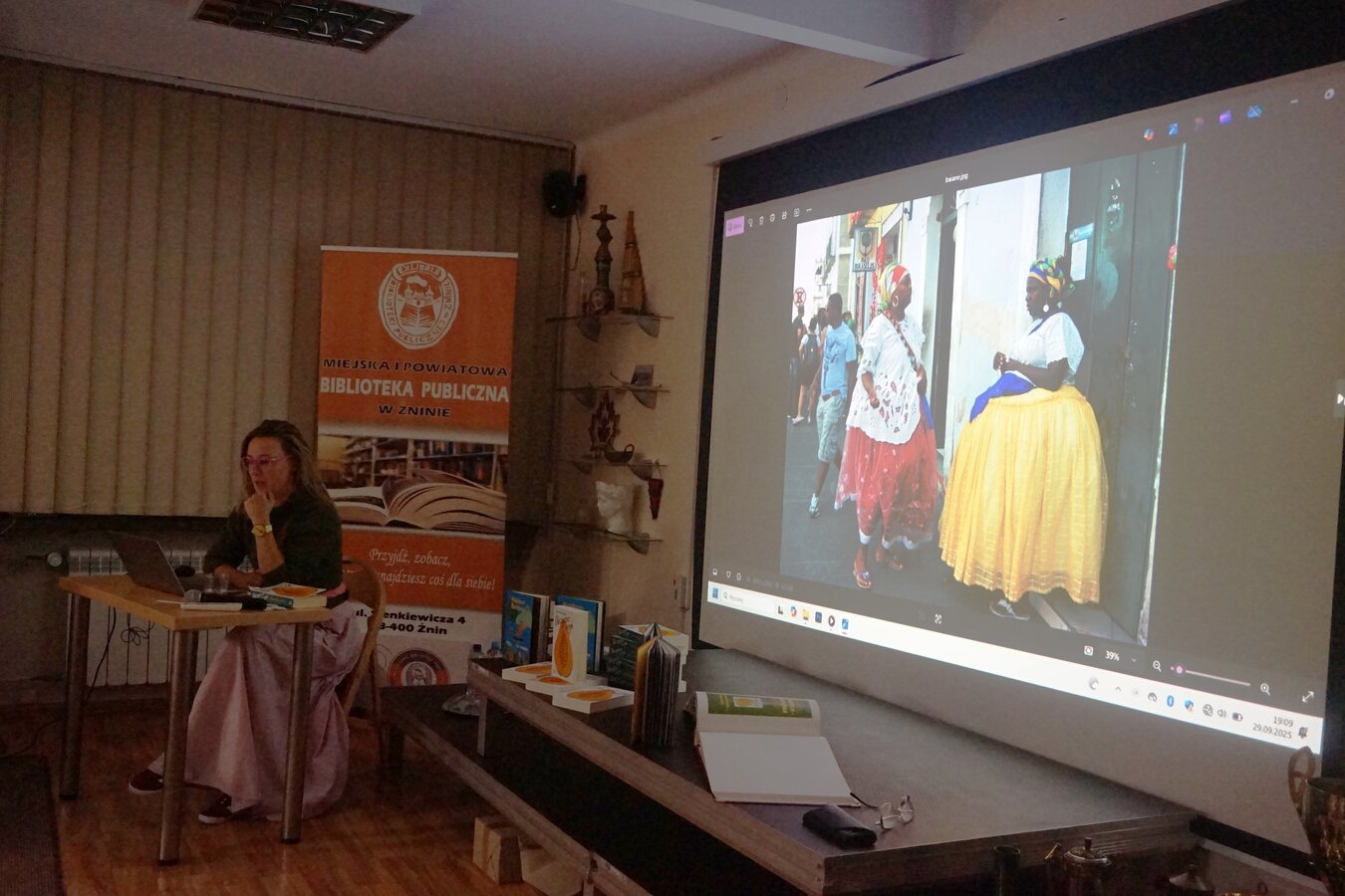 Eliza Piotrowska – pisarka, poetka, tłumaczka książek i podróżniczka, która swoje życie dzieli pomiędzy Polską a Brazylią była gościem Klubu Podróżnika działającego w naszej bibliotece 29 września 2025 r.
