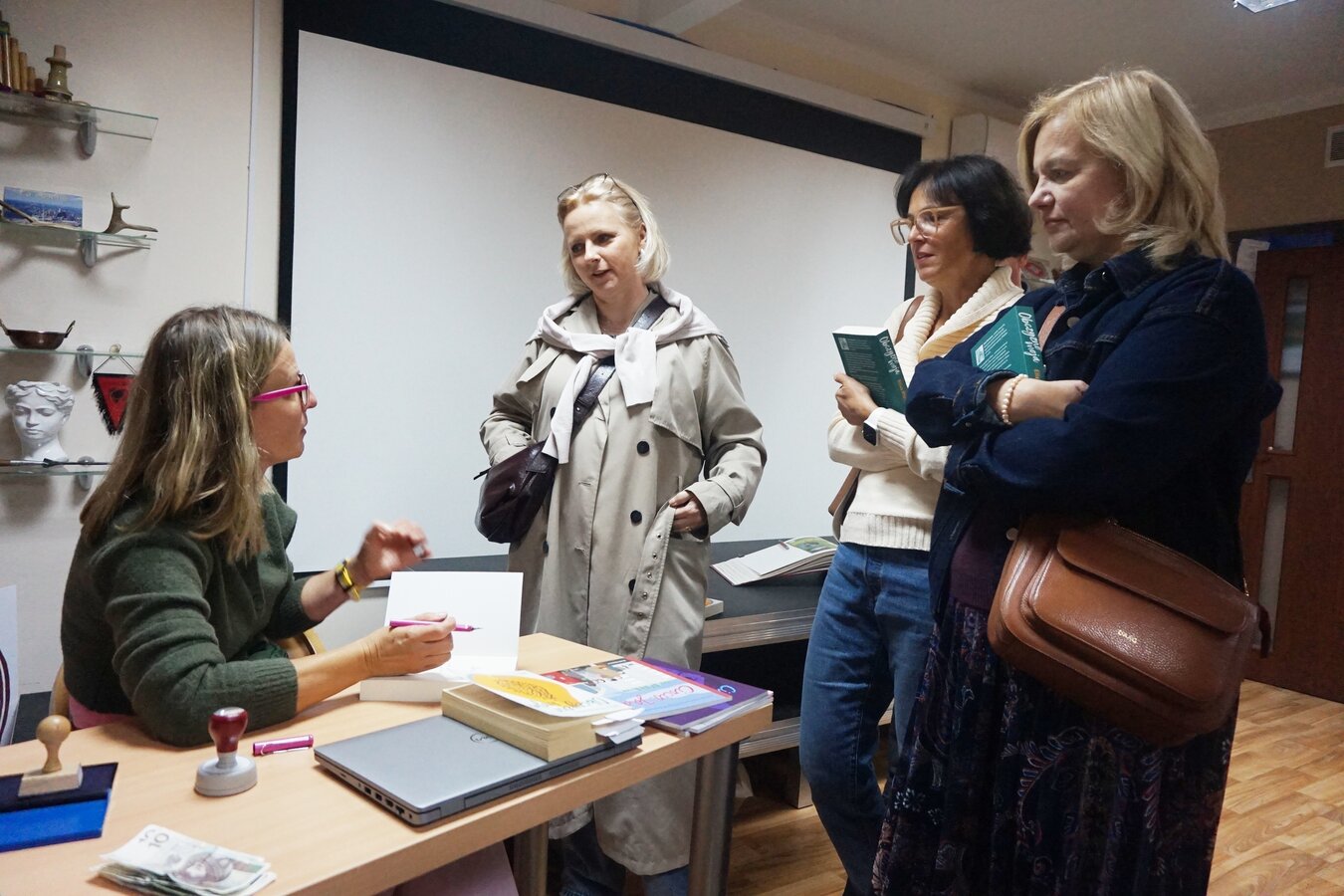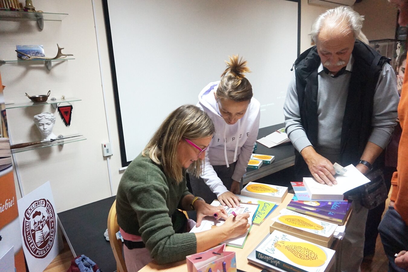 po spotkaniu podróżniczka podpisywała swoje książki i chętnie odpowiadała na zadawane jej w kuluarach pytania.