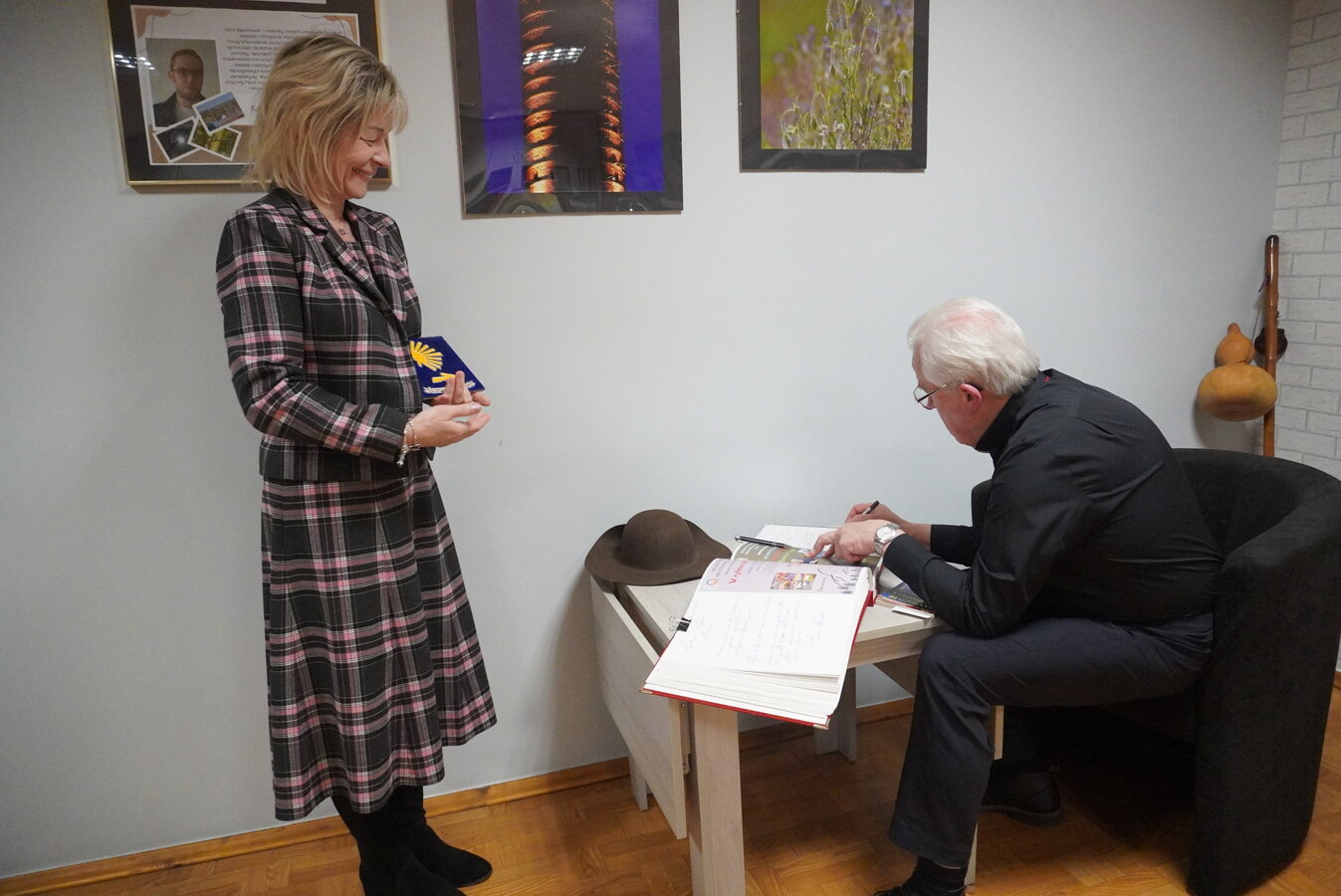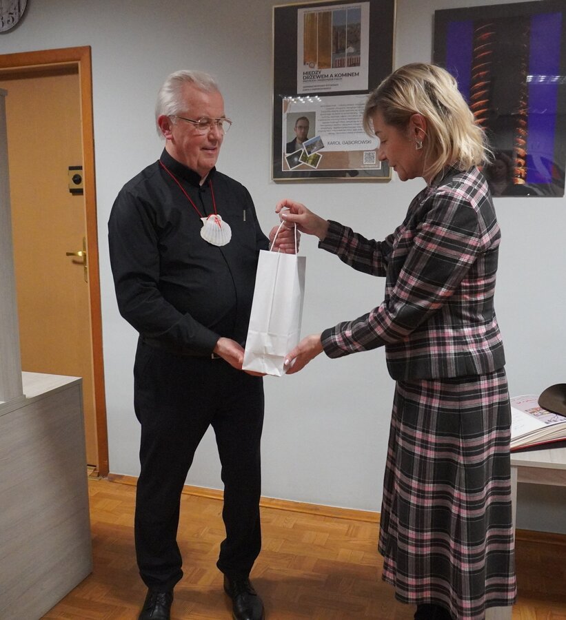 Na zakończenie spotkania prelegent przekazał do Klubu Podróżnika pamiątkę z wyprawy potwierdzającą pokonanie szlaku św. Jakuba, co od powstania naszego Klubu w 1998 r. jest już tradycją.