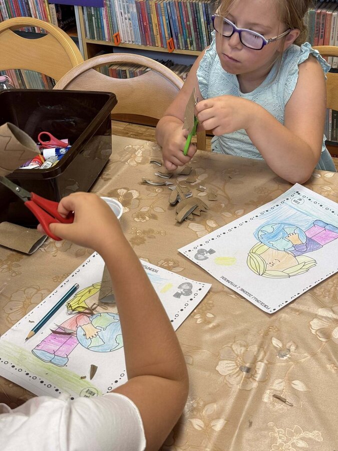 Za nami kolejne zajęcia wakacyjne, które odbywają się pod hasłem „Ekologiczne hece w bibliotece”