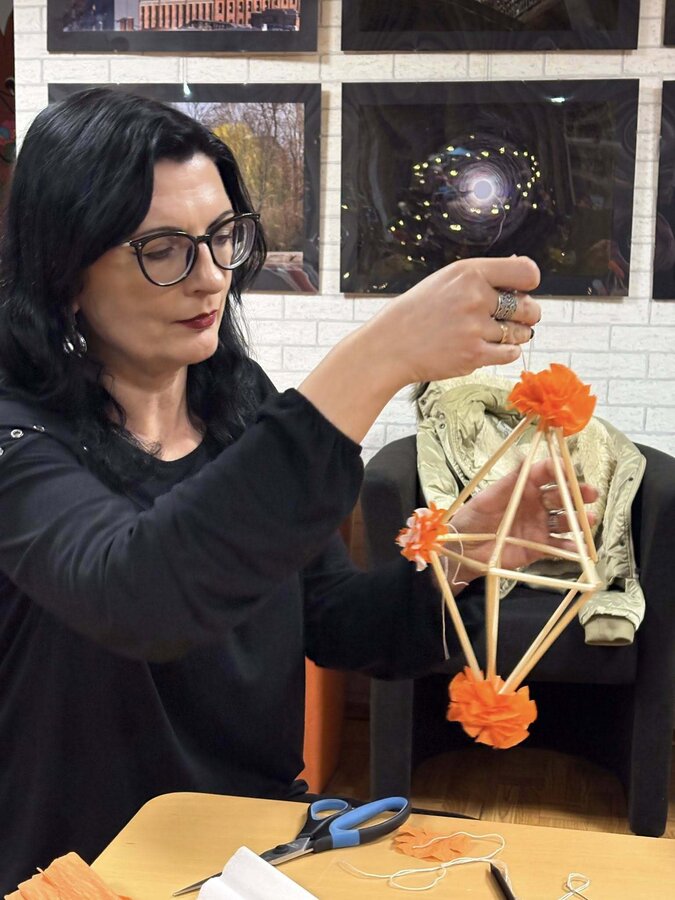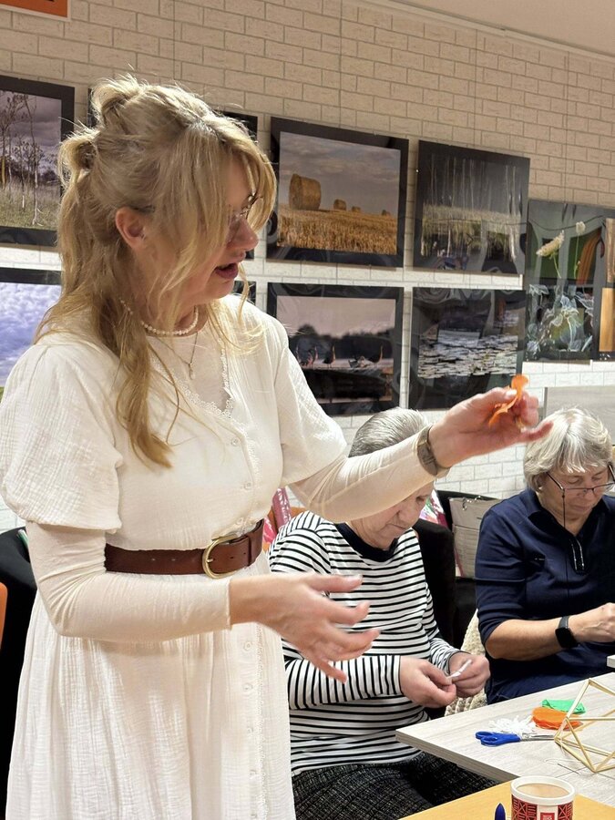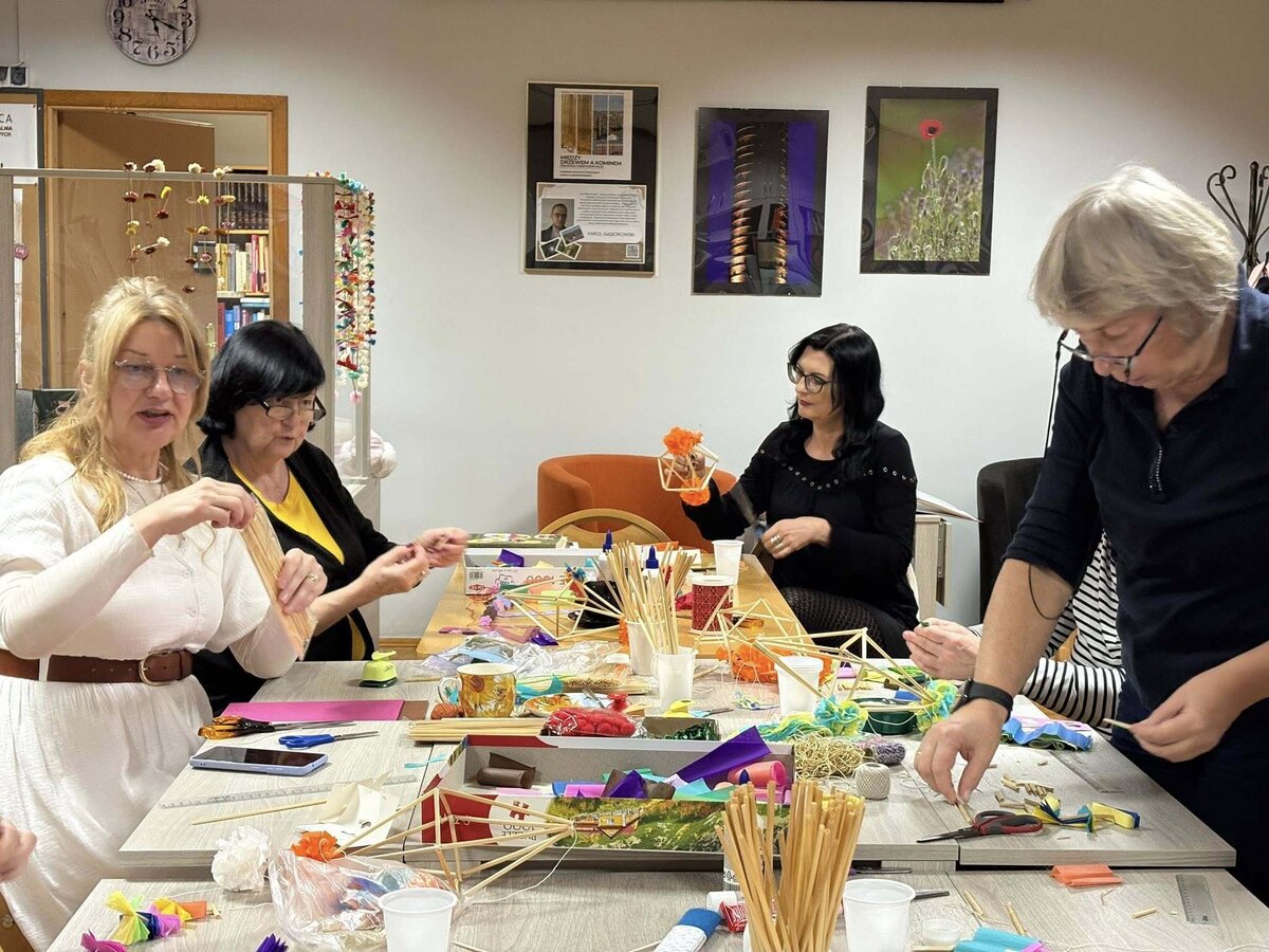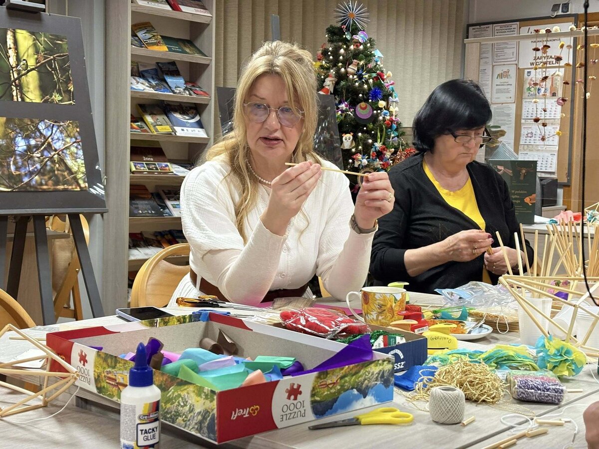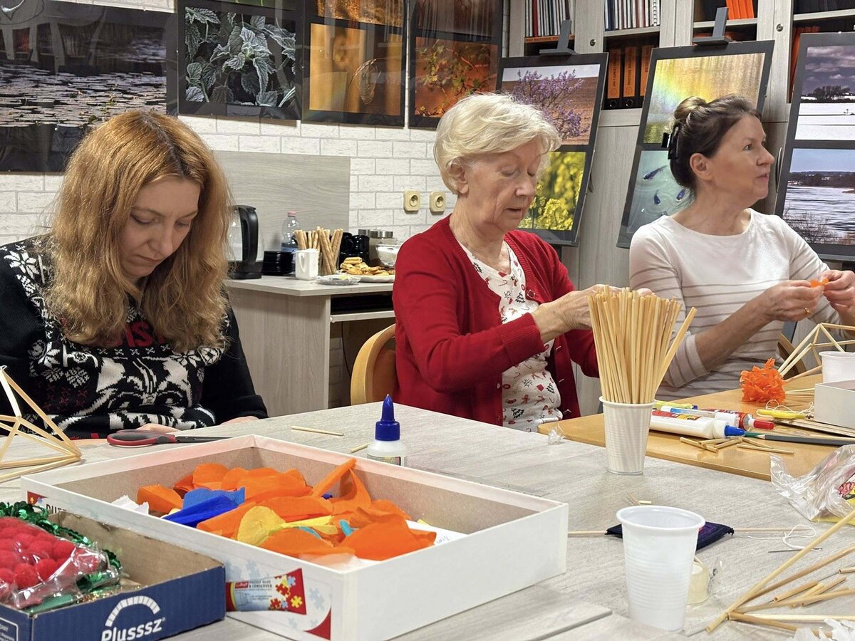 10 grudnia 2025 roku w naszej bibliotece odbyły się warsztaty „Zdobnictwo - plastyka obrzędowa” z panią Izabelą Pilarską. Uczestnicy poznali techniki powstawania tradycyjnych ozdób świątecznych i uczyli się jak z naturalnych materiałów wyczarować rękodzielnicze cuda. W ramach idei „święta bez plastiku” najpierw stworzyliśmy kryształka ze słomy i bibuły. Po tym pracochłonnym, aczkolwiek satysfakcjonującym zadaniu przeszliśmy do wykonania łańcucha z tych samych materiałów.