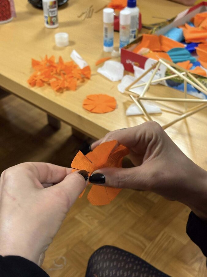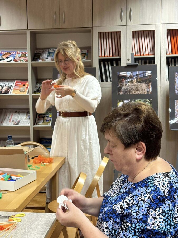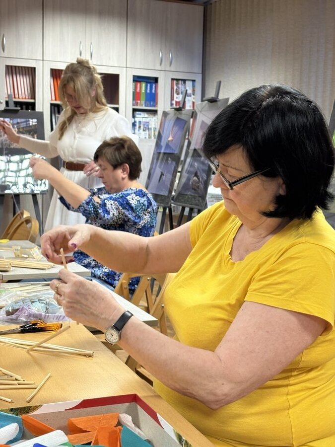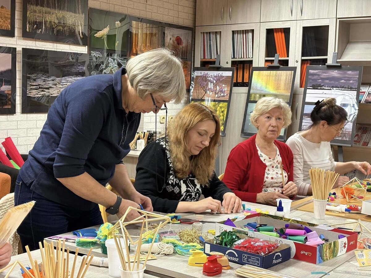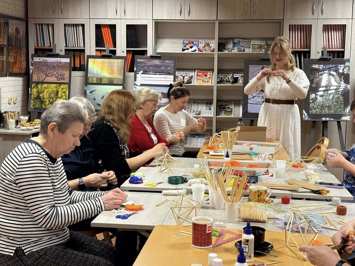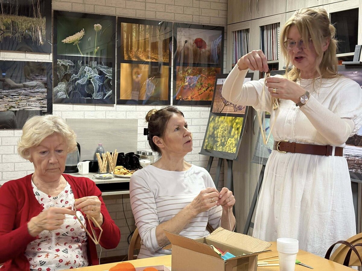 10 grudnia 2025 roku w naszej bibliotece odbyły się warsztaty „Zdobnictwo - plastyka obrzędowa” z panią Izabelą Pilarską. Uczestnicy poznali techniki powstawania tradycyjnych ozdób świątecznych i uczyli się jak z naturalnych materiałów wyczarować rękodzielnicze cuda. W ramach idei „święta bez plastiku” najpierw stworzyliśmy kryształka ze słomy i bibuły. Po tym pracochłonnym, aczkolwiek satysfakcjonującym zadaniu przeszliśmy do wykonania łańcucha z tych samych materiałów.