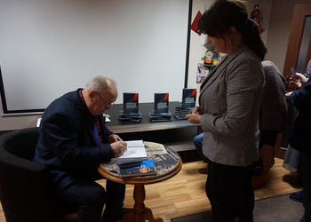 Po spotkaniu Tomasz Kardaś podpisywał swoją książkę.