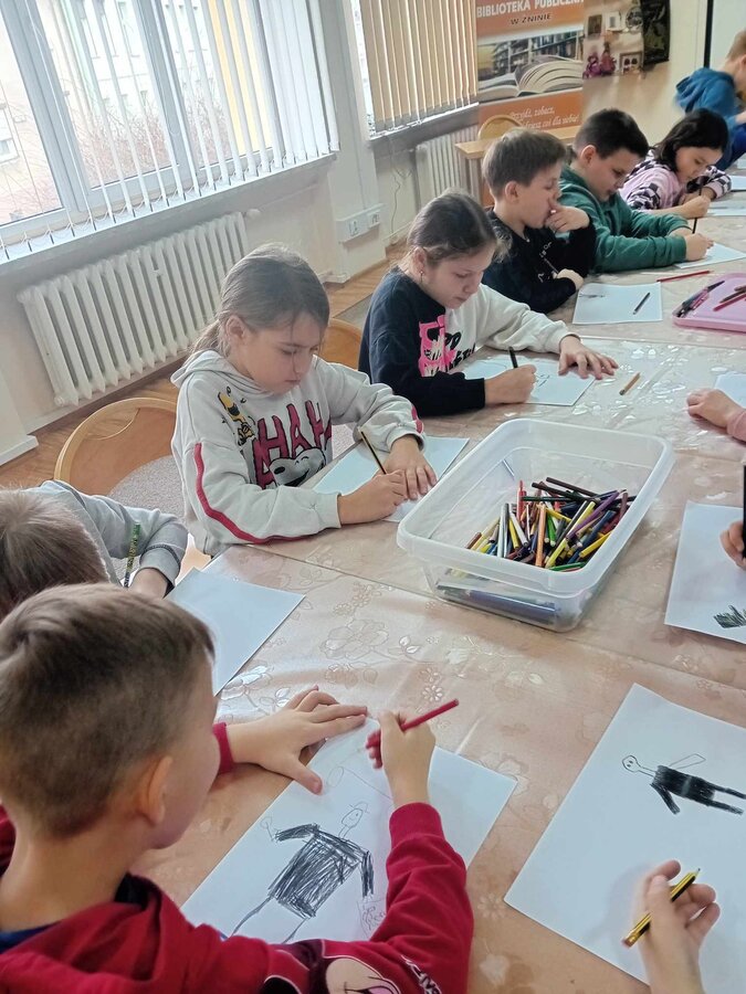 Dowiedzieliśmy się kim jest detektyw i czym się zajmuje. Następnie wykorzystując metodę ,,burzy mózgów” zapisywaliśmy, czym powinien się charakteryzować detektyw i jakich narzędzi używa w swojej pracy. Podsumowaniem spotkania było narysowanie przez uczestników jego postaci, wykorzystując wszystkie zawarte na zapisanej wcześniej tablicy informacje.
