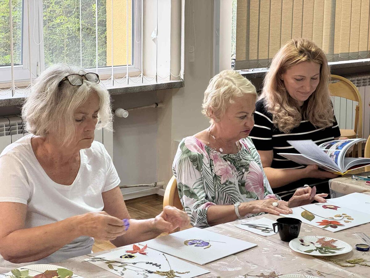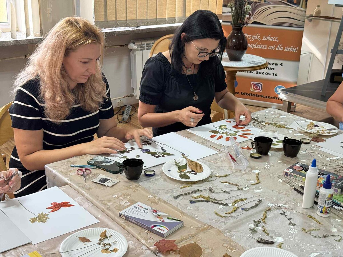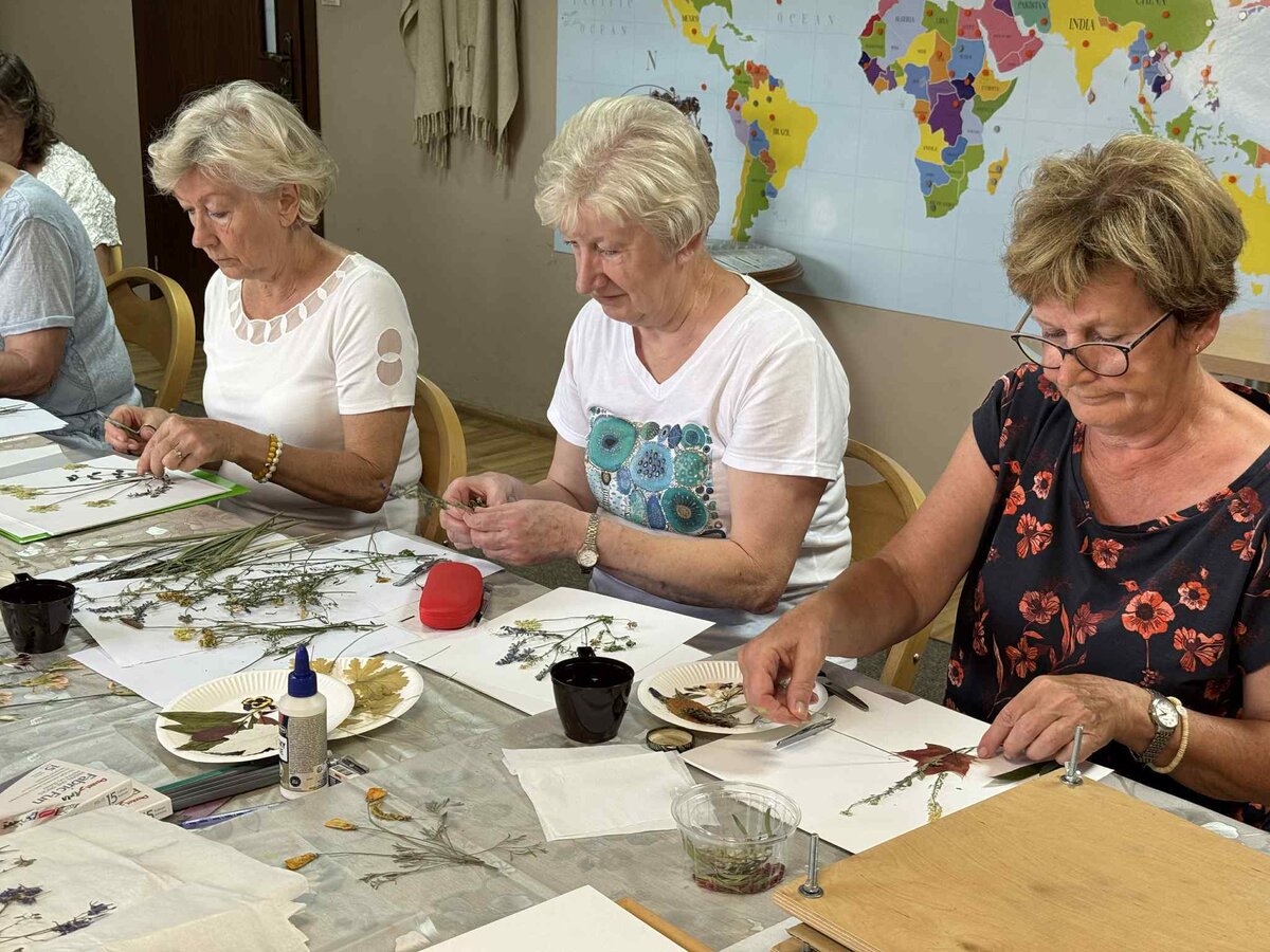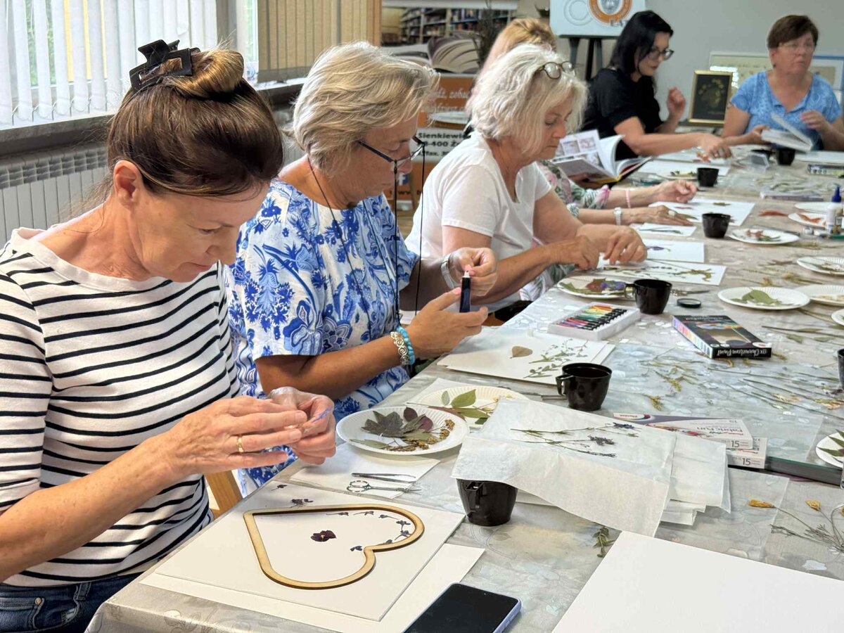 Przyniesione przez panią Izę publikację wprowadziły nas w temat tworzenia trwałych dekoracji, takich jak bukiety, wianki i kompozycje, wykorzystując przy tym naturalnie zasuszone rośliny. Razem za poradą prowadzącej udało nam się stworzyć oryginalne projekty płaskich obrazów, które będą stanowiły idealną pamiątkę lub prezent dla miłośników natury i stylu boho. Za dwa tygodnie będziemy kończyć nasze dzieła.