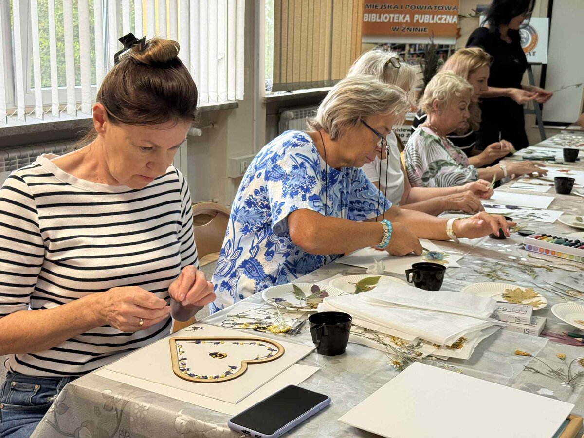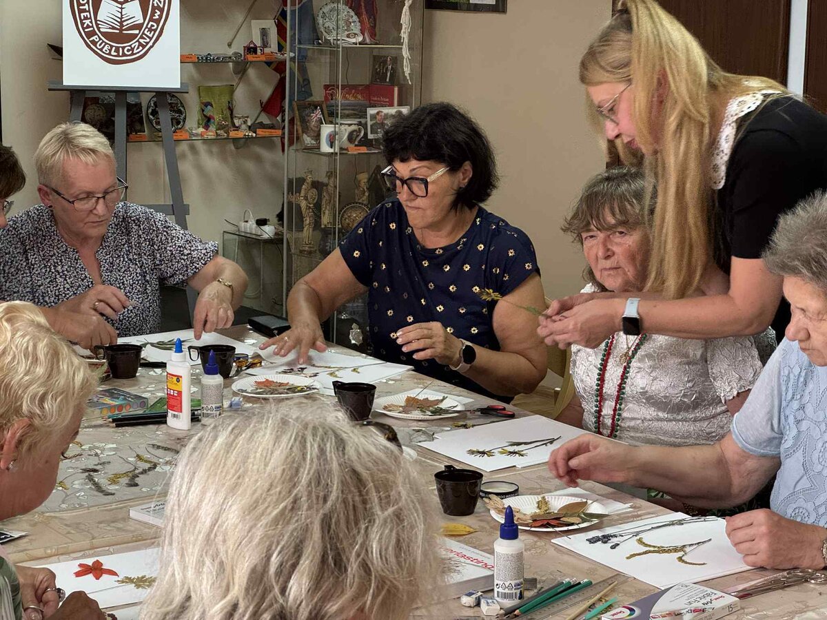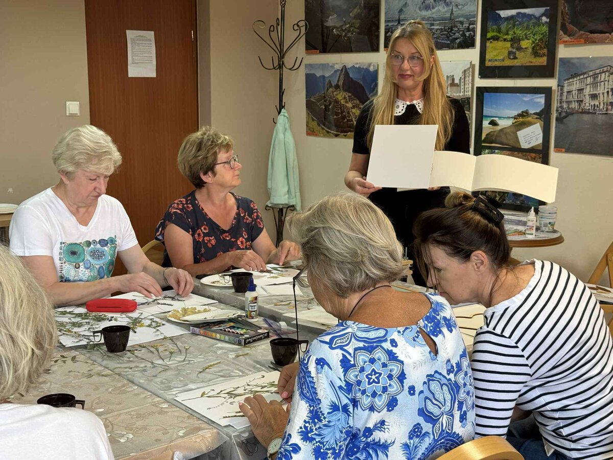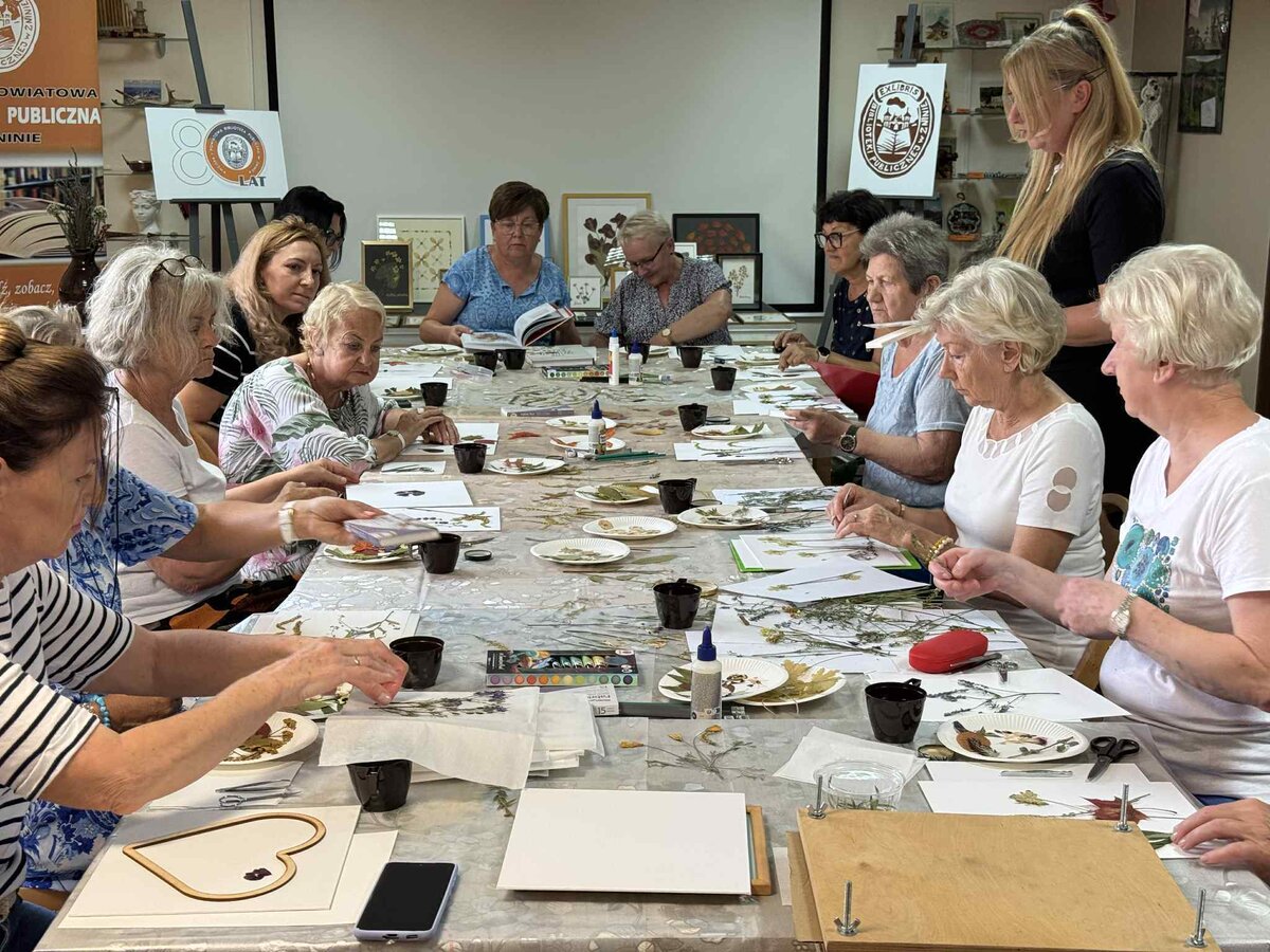 Przyniesione przez panią Izę publikację wprowadziły nas w temat tworzenia trwałych dekoracji, takich jak bukiety, wianki i kompozycje, wykorzystując przy tym naturalnie zasuszone rośliny. Razem za poradą prowadzącej udało nam się stworzyć oryginalne projekty płaskich obrazów, które będą stanowiły idealną pamiątkę lub prezent dla miłośników natury i stylu boho. Za dwa tygodnie będziemy kończyć nasze dzieła.