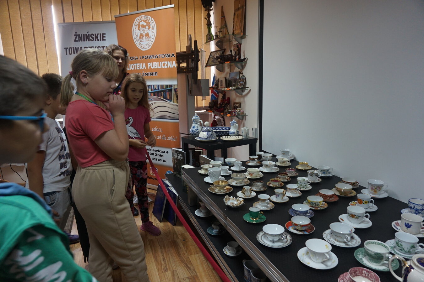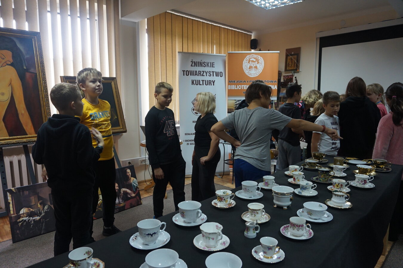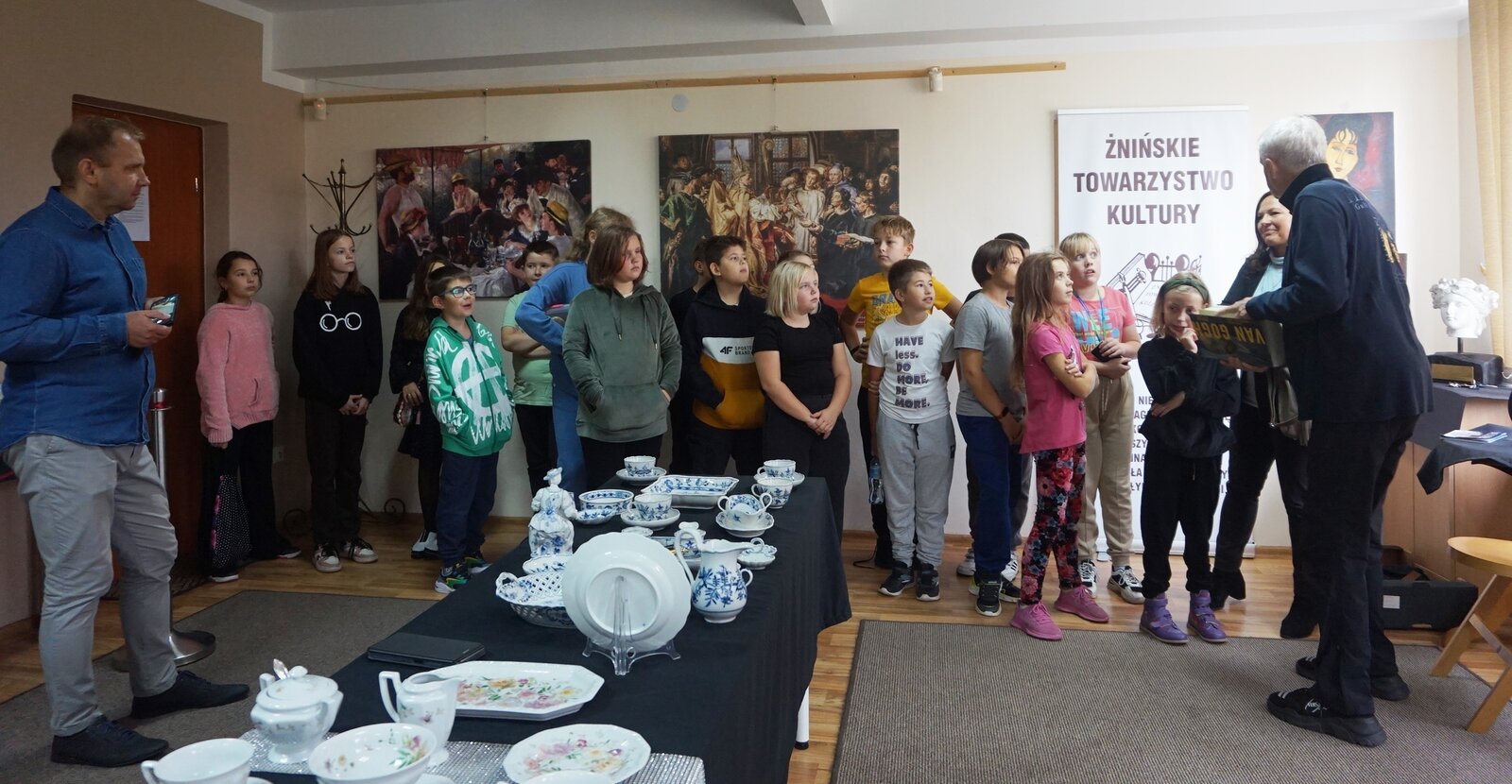 6 października wraz z panem Markiem Wilgórskim odwiedzili Bibliotekę uczniowie IV klasy ze Szkoły Podstawowej nr 5 w Żninie. Dzieci obejrzały wystawę "Czar porcelany z malarstwem w tle". Po wystawie porcelany oprowadzili klasę i opowiedzieli o swojej pasji oraz zbiorach: Barbara Filipiak i Stefan Czarnecki.