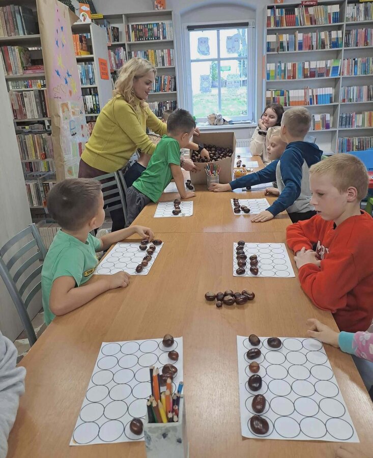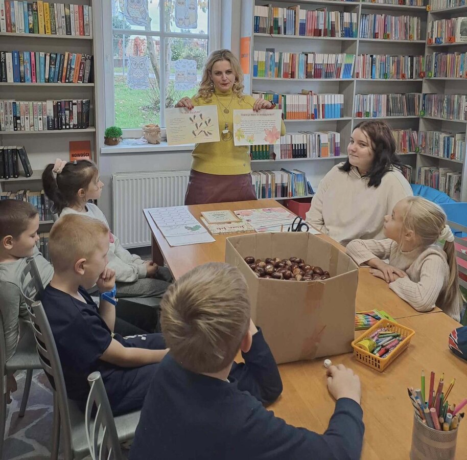 22 października w Filii Bibliotecznej w Brzyskorzystewku odbyły się jesienne zajęcia „Kasztanowe memory"