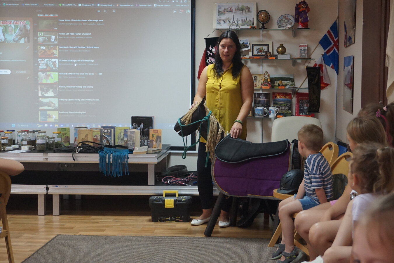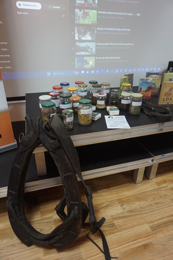 Panie przywiozły ze sobą drewnianego konia Mariana, który był dużą atrakcją oraz inne gadżety wykorzystywane przy pielęgnacji koni, czy też używane do jeździectwa. Dzieci miały również okazję zobaczyć, co jedzą konie.