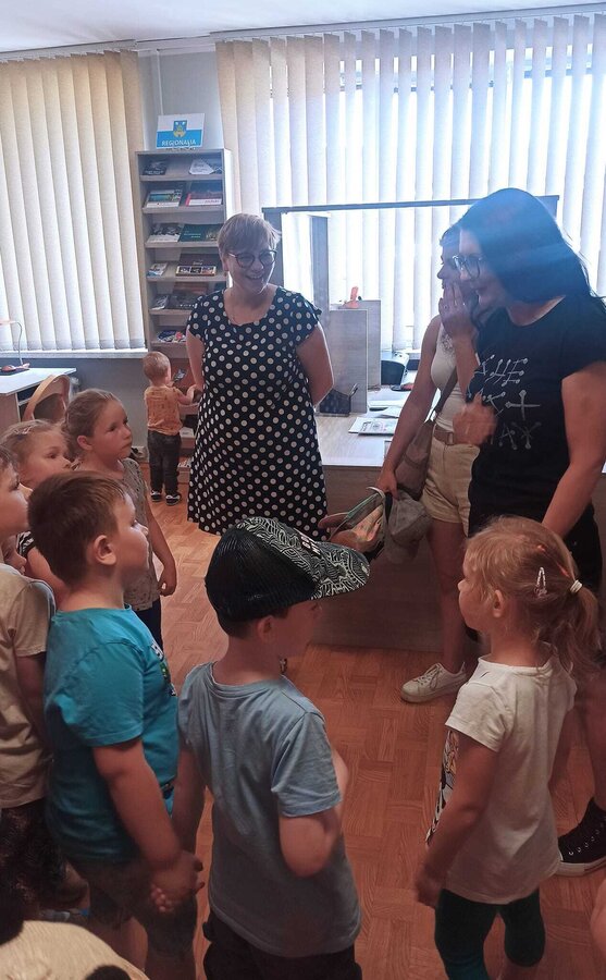 Przedszkolaki z grup MISIE i SÓWKI dowiedziały się od pani Ewy co należy zrobić, żeby zostać czytelnikiem i jakie książeczki mogą wypożyczyć. Następnie dzieci wysłuchały teatrzyku kamishibai pt. ,,Magiczna gąsienica" oraz ,,Kotka psotka”. Dzieci zwiedziły pozostałe działy biblioteki czyli czytelnie i wypożyczalnie dla dorosłych.