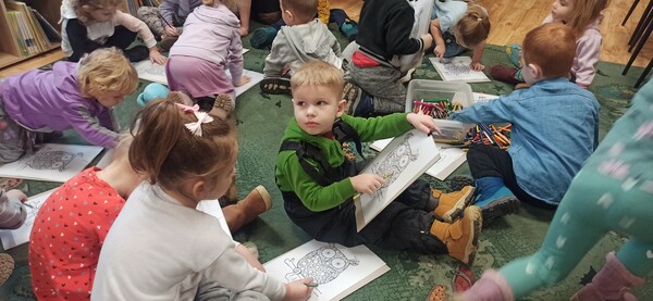 17 stycznia gościliśmy w progach naszej biblioteki najmłodszą grupę z przedszkola ,,U Boba” Motylki. Przedszkolaki dowiedziały się, co trzeba zrobić żeby założyć kartę biblioteczną, jakie można wypożyczyć książeczki i na jaki czas. Dzieci dowiedziały się również o co proszą je książki, kiedy zostaną już wypożyczone. Następnie Motylki pokolorowały Sowę mądrą głowę, która jest symbolem biblioteki. Na końcu naszego spotkania wszystkie przedszkolaki dostały od pani bibliotekarki zakładkę do książki, no i oczywiście słodki upominek.