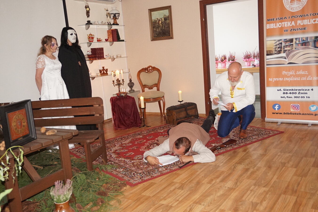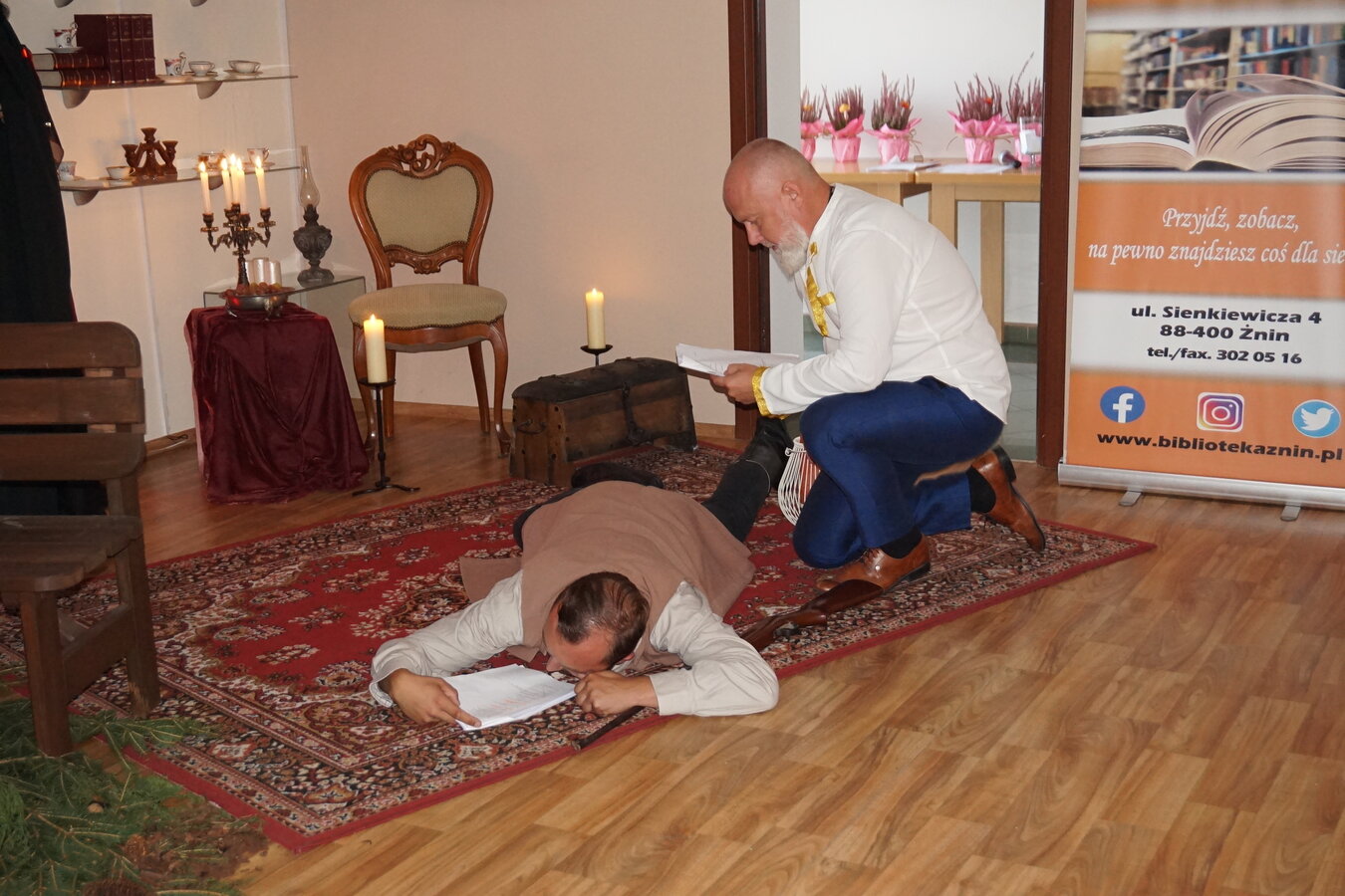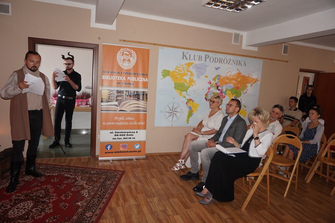 Jak co roku Narodowe Czytanie w naszej Książnicy przybrało postać spektaklu, a obsadę tworzyli: pracownicy biblioteki, przedstawiciele instytucji samorządowych, nauczyciele żnińskich szkół oraz grupa rekonstrukcyjna (historyczna) działająca przy Zespole Szkół Technicznych w Żninie. W postacie z „Kordiana” wcielili się: Aleksander Kranc (Kordian), Remigiusz Świtkowski (Car i Szatan), Violetta Olesiak (Imaginacja), Katarzyna Pańkowska-Potempa (Strach), Aleksandra Dąbrowska-Pawłowska (Czarownica), Kinga Łykowska (Diabli, Astaroth), Aleksander Paradowski (Mefistofel), Ewa Dąbrowska-Goclik (Archanioł), Ewa Malak (Widmo, Twór, Gehenna). W skład Chóru Aniołów weszli: Beata Czaczyk i Ewa Malak.
