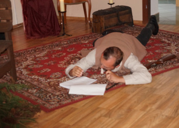 „Przygotowanie” rozegrało się przed przygotowaną w książnicy chatą czarnoksiężnika Twardowskiego w górach Karpackich, zaś scena V aktu III w sali koncertowej w zamku królewskim.