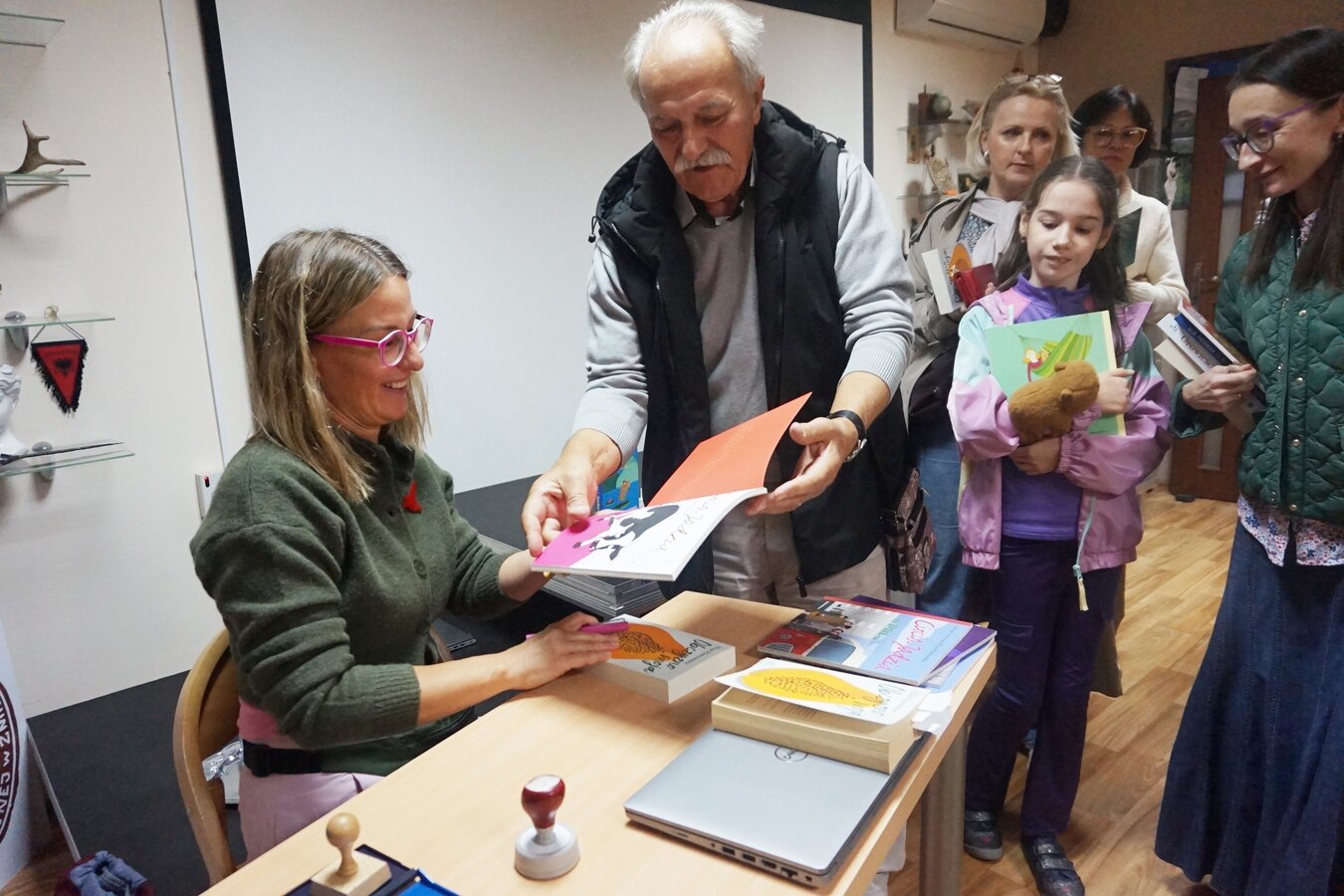 po spotkaniu podróżniczka podpisywała swoje książki i chętnie odpowiadała na zadawane jej w kuluarach pytania.