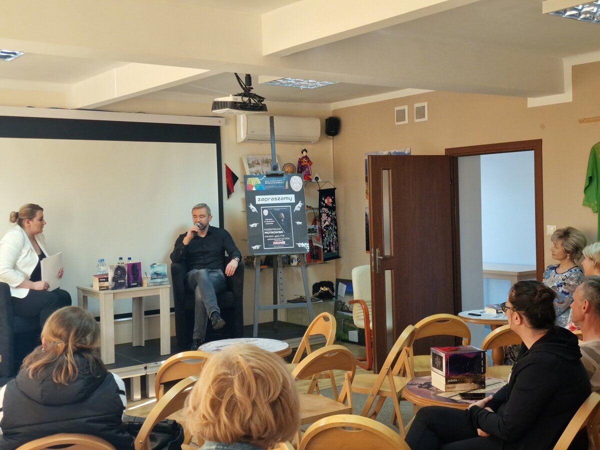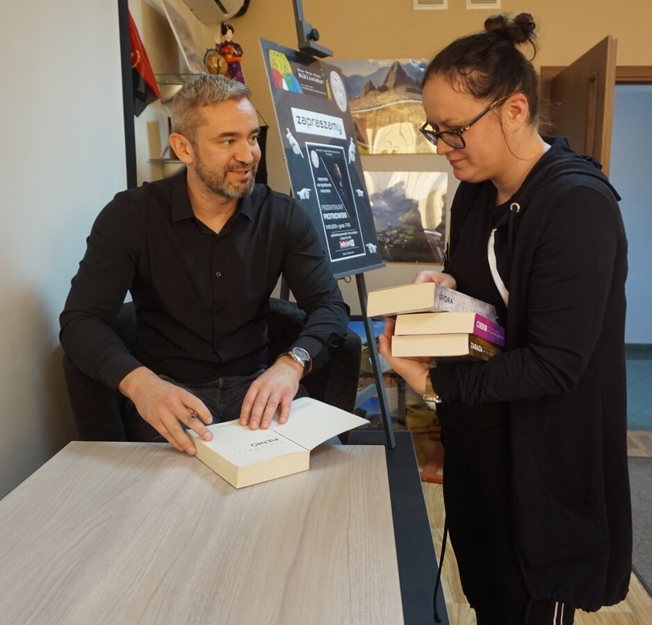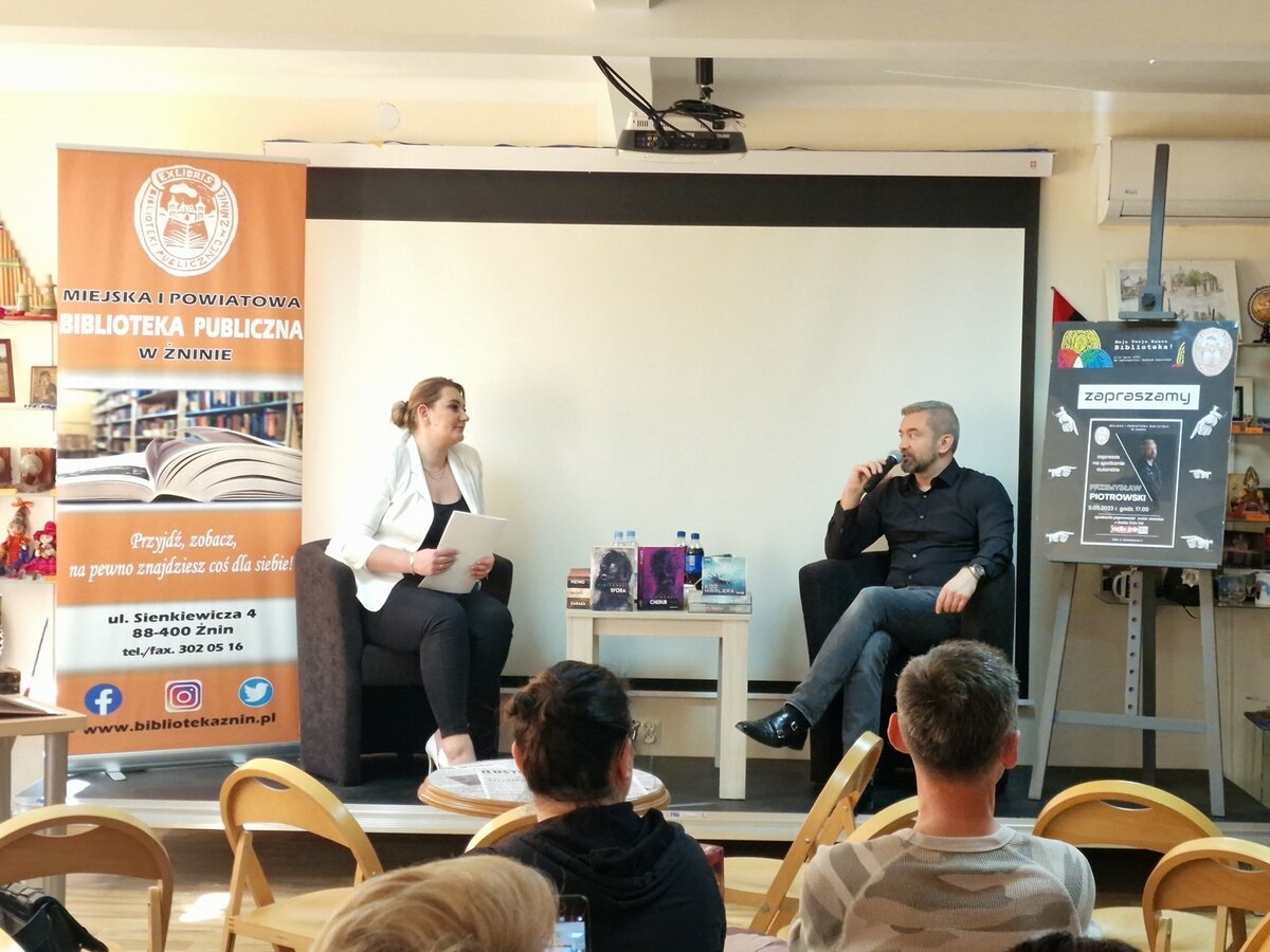 Przemysława Piotrowskiego przedstawiać nie trzeba, bo kto czytał "Piętno", "Zarazę", "Sforę" czy "Bagno" do biblioteki przybiegł w podskokach, by spotkać swojego ulubionego autora.