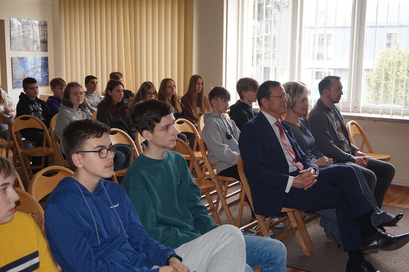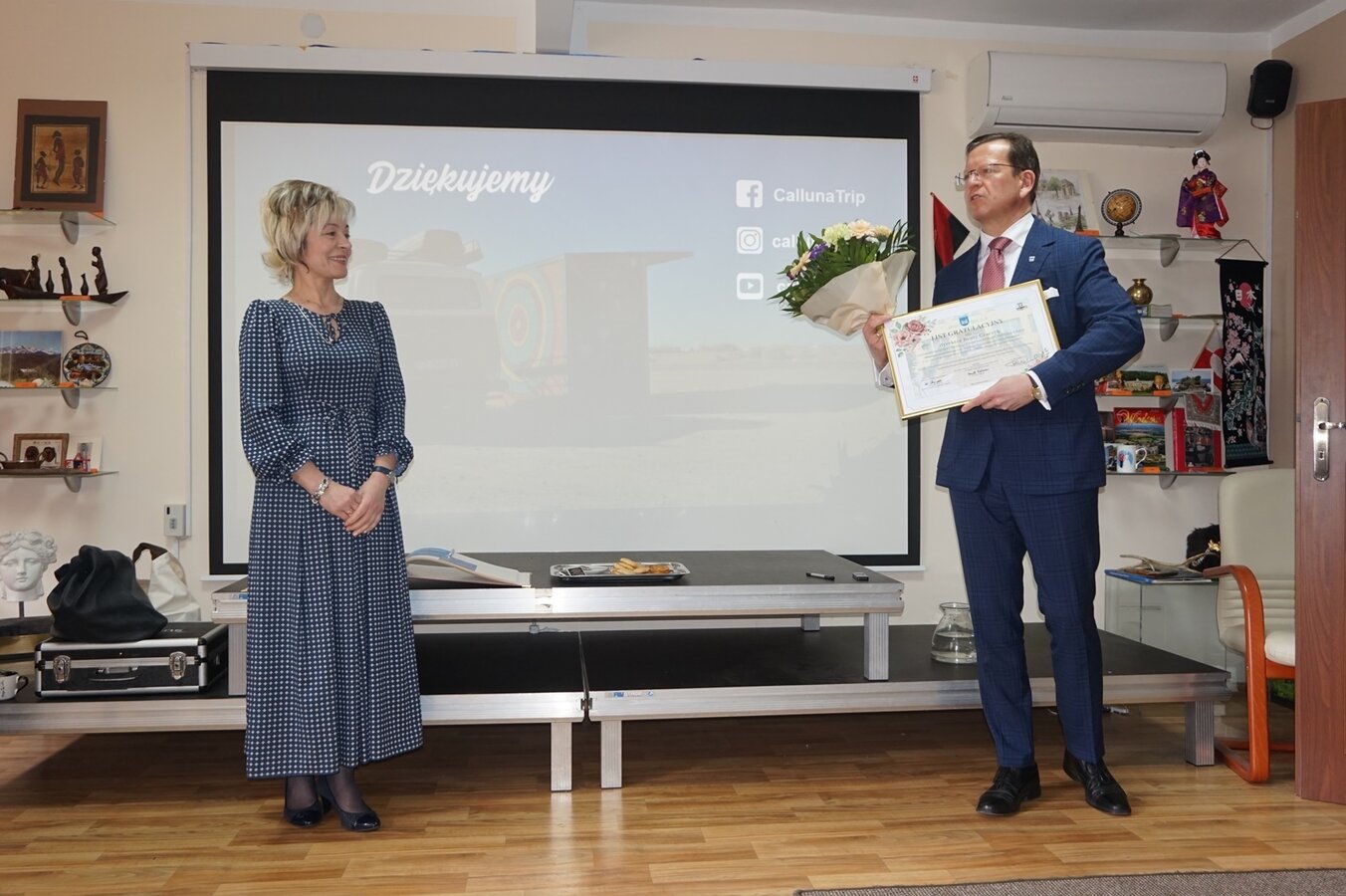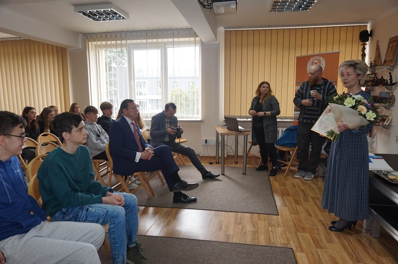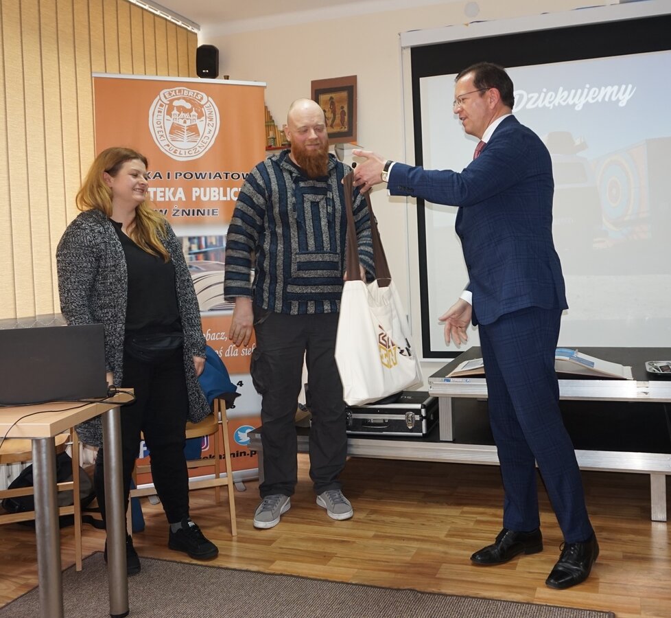 Na spotkaniu obecny był Burmistrz Żnina Robert Luchowski, który na ręce Pani Dyrektor Beaty Czaczyk złożył kwiaty i list gratulacyjny kierowany do całego zespołu naszej Książnicy z okazji zdobycia wyróżnienia w Ogólnopolskim Konkursie Czytelniczym "Mistrz promocji czytelnictwa 2022".