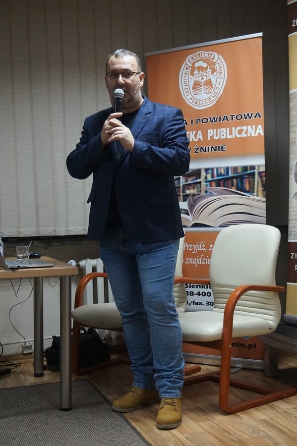 10 listopada 2022 r. gościem Miejskiej i Powiatowej Biblioteki Publicznej w Żninie był Karol Soberski - autor książki "Zagadkowy Kolekcjoner. Marian Haber - ziemianin, marszand, celebryta".