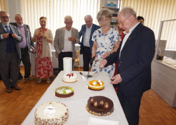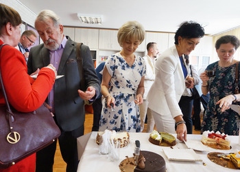 Po spotkaniu prof. Ignacy Lewandowski podpisywał swoją książkę, a na wszystkich czekał słodki poczęstunek.