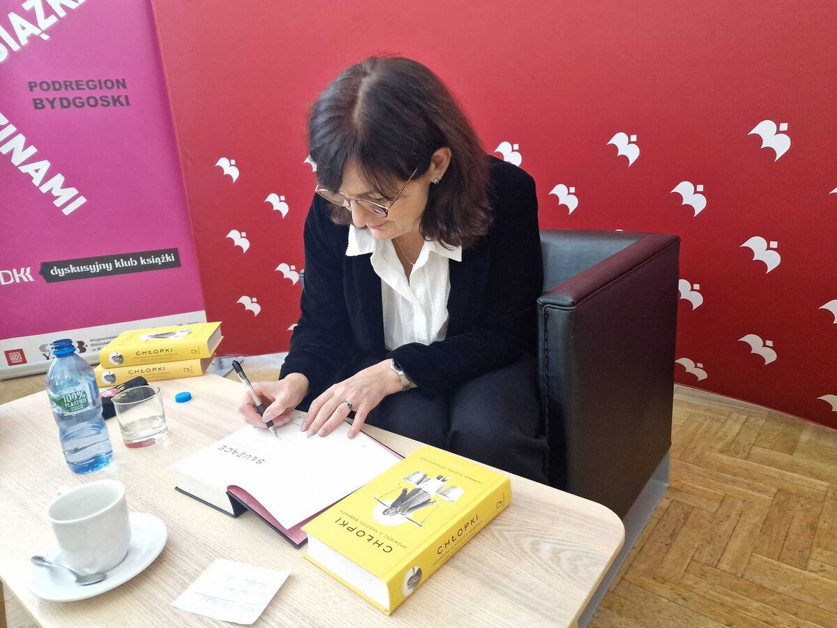 15 listopada w Wojewódzka i Miejska Biblioteka Publiczna im. dr. W. Bełzy w Bydgoszczy odbył się zjazd prowadzących Dyskusyjne Kluby Książki. Po rozmowach moderatów podregionu bydgoskiego nastąpiła kolejna część – otwarte spotkanie autorskie z Joanną Kuciel-Frydryszak. Autorka „Iłły” –biografii Kazimiery Iłłakowiczówny oraz „Służących do wszystkiego” skupiła się na swoim ostatnim, bestsellerowym tytule: „Chłopkach”. O popularności książki świadczyć może także frekwencja na spotkaniu i pełna sala. Pani Joanna opowiedziała o pracy, którą musiała włożyć w stworzenie książki, ale także o głosach, które docierają do niej po jej premierze. W trakcie rozmów z autorką usłyszała ona podziękowania za podjęcie się opisania tak ważnego i pominiętego tematu oraz prywatne historie uczestników o ich babkach i prababkach. Dziękujemy Bibliotece Wojewódzkiej za zorganizowanie tego spotkania oraz autorce za przyjemność jej wysłuchania!