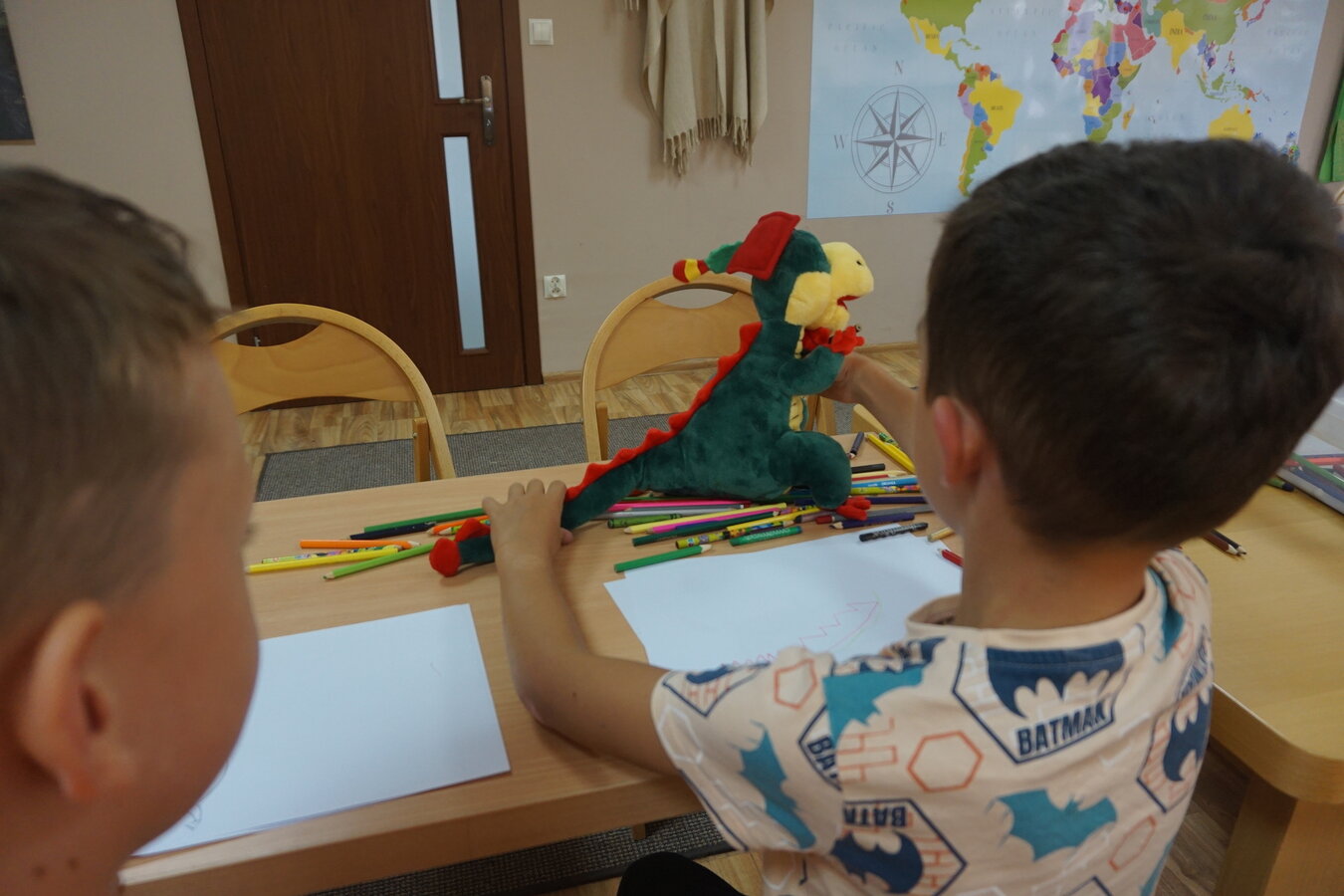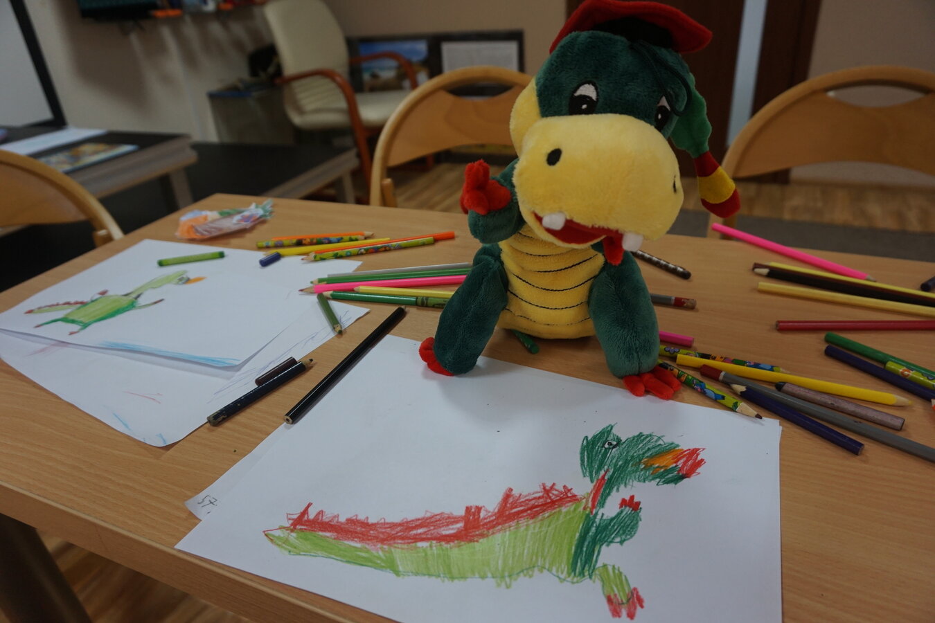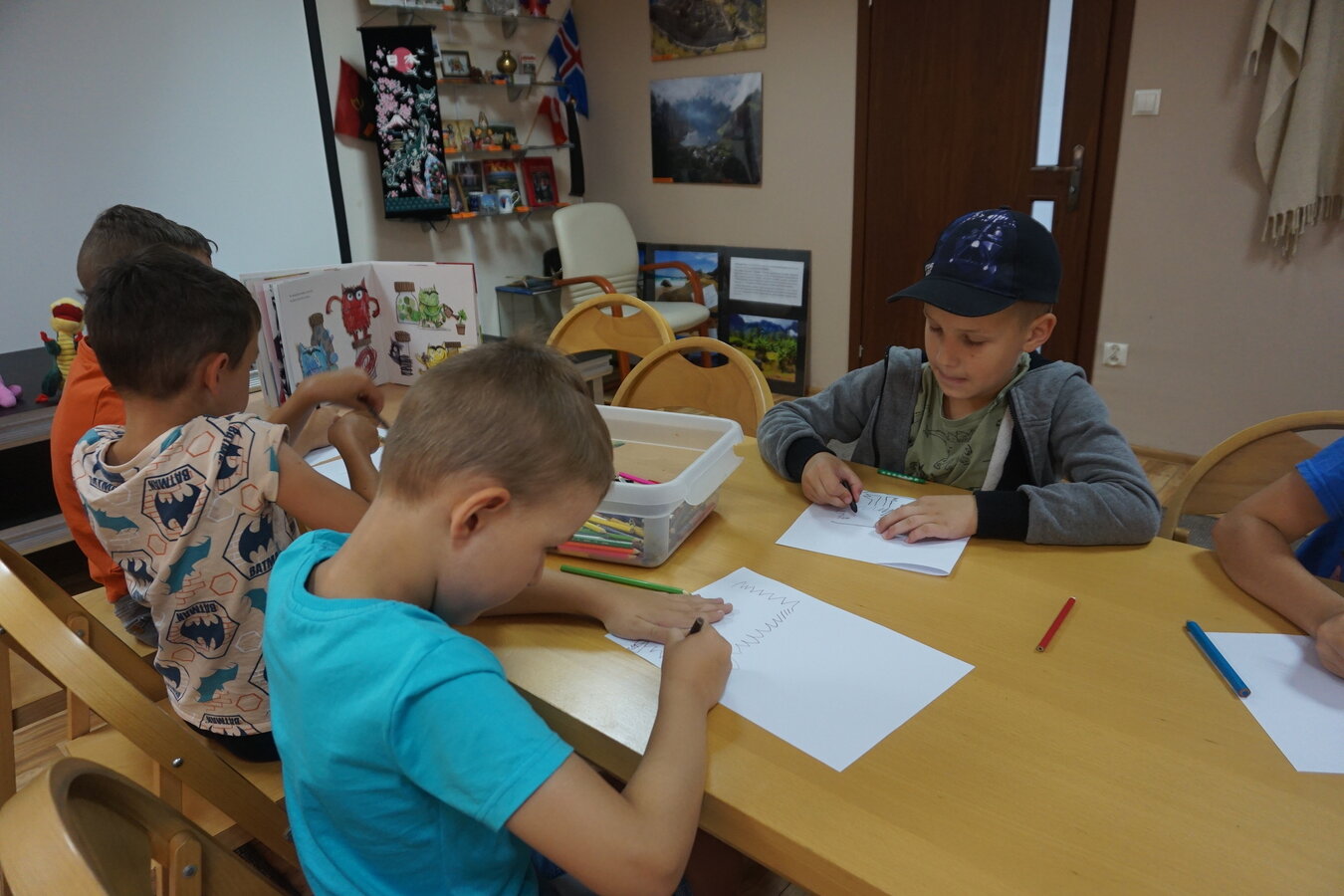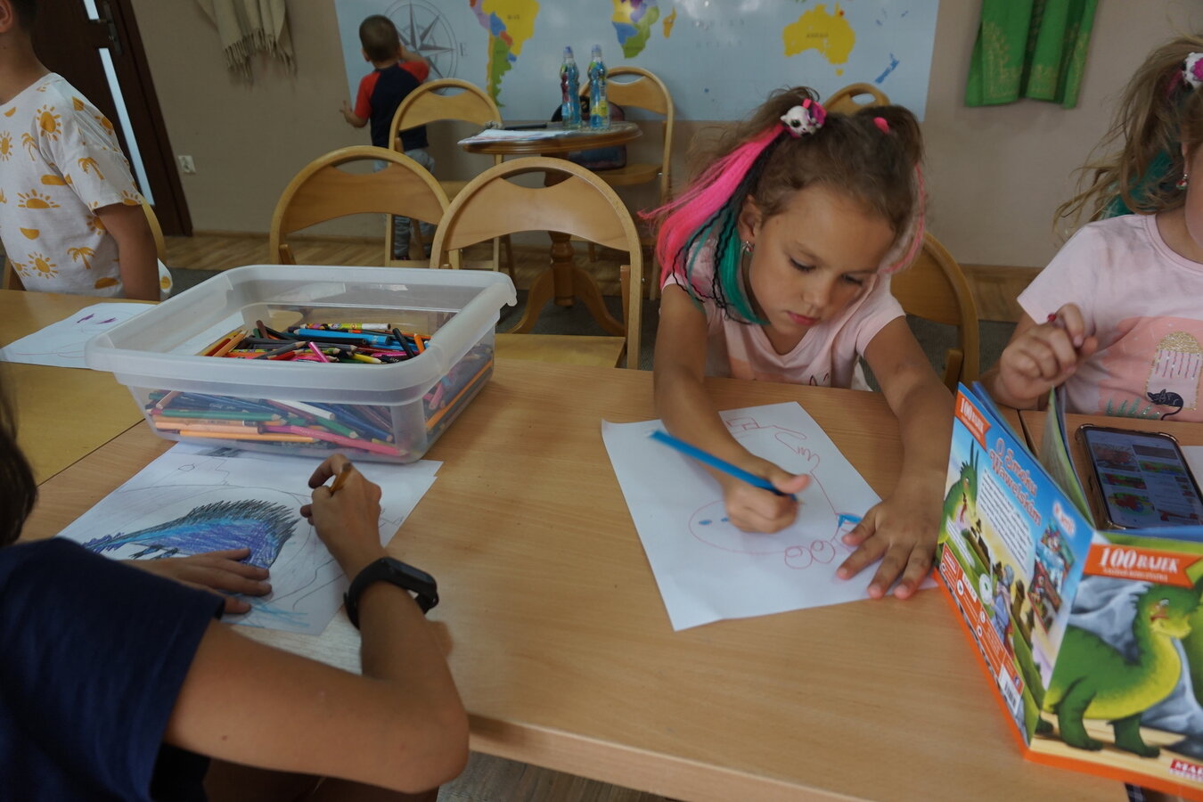 W kolejnej części zajęć dzieci rysowały swojego Potworka, który miał mieć kolor uczuciatowarzyszącego im podczas słuchania opowieści. Dzieci narysowały również Smoka Wawelskiego i
