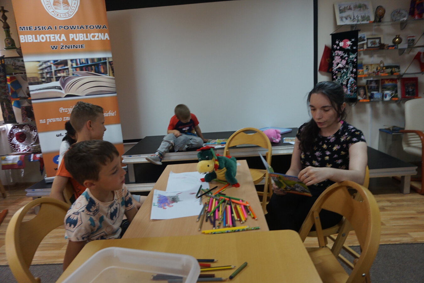 20 lipca zaprosiliśmy dzieci do wysłuchania bajeczek, których bohaterami były literackie ,,potworki”. Swoją przygodę rozpoczęły od spotkania z Smokiem Wawelskim, Bazyliszkiem, Smokiem Maciusiem oraz kolorowym Potworkiem, któremu poplątały się emocje i trzeba było mu pomóc je posprzątać. Dopiero wtedy udało się naszemu bohaterowi rozpoznać emocje, które mu towarzyszyły, czyli: radość, smutek, złość, strach i spokój.