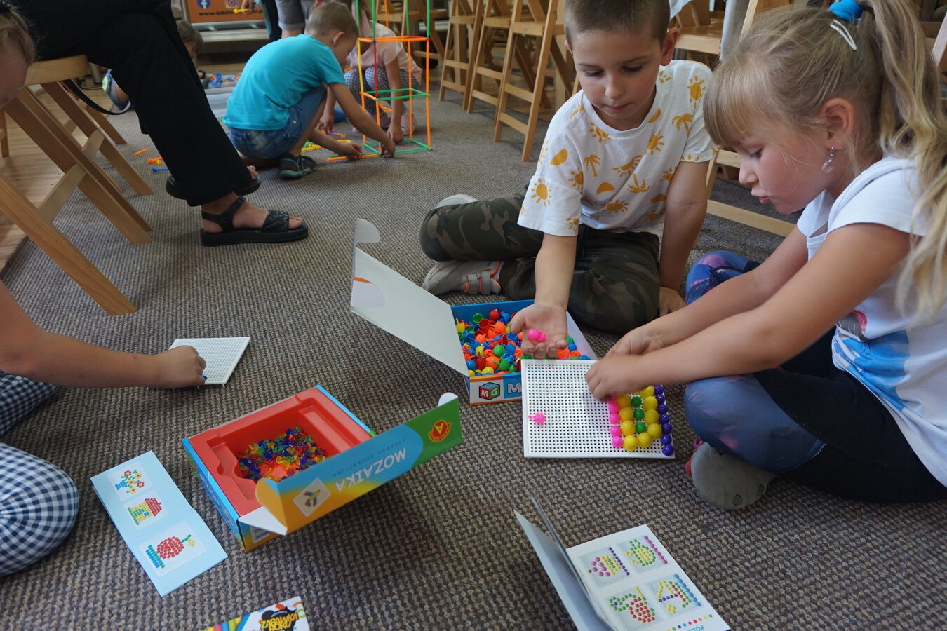 bawiły się klockami konstruktorskimi.