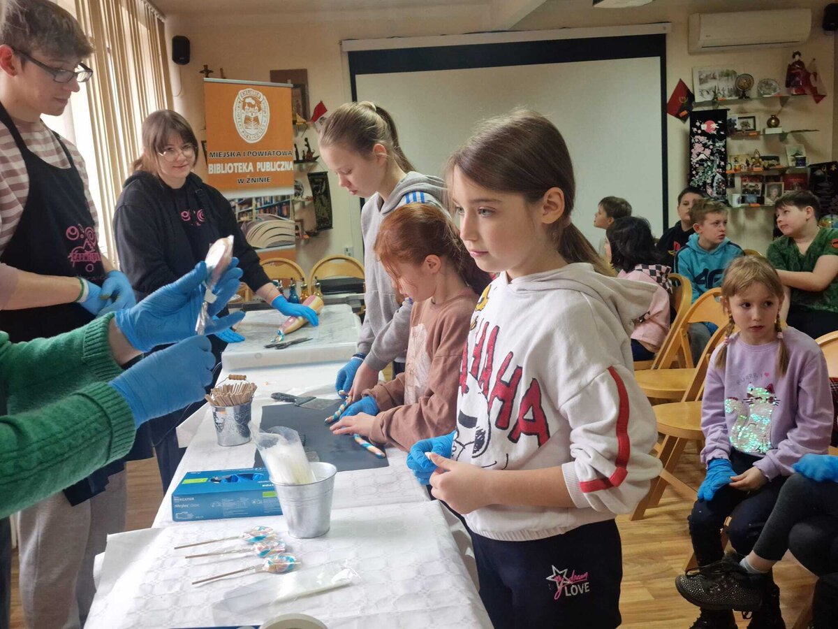 22 lutego (czwartek) w naszej bibliotece odbyły się warsztaty ręcznego wykonywania lizaków.