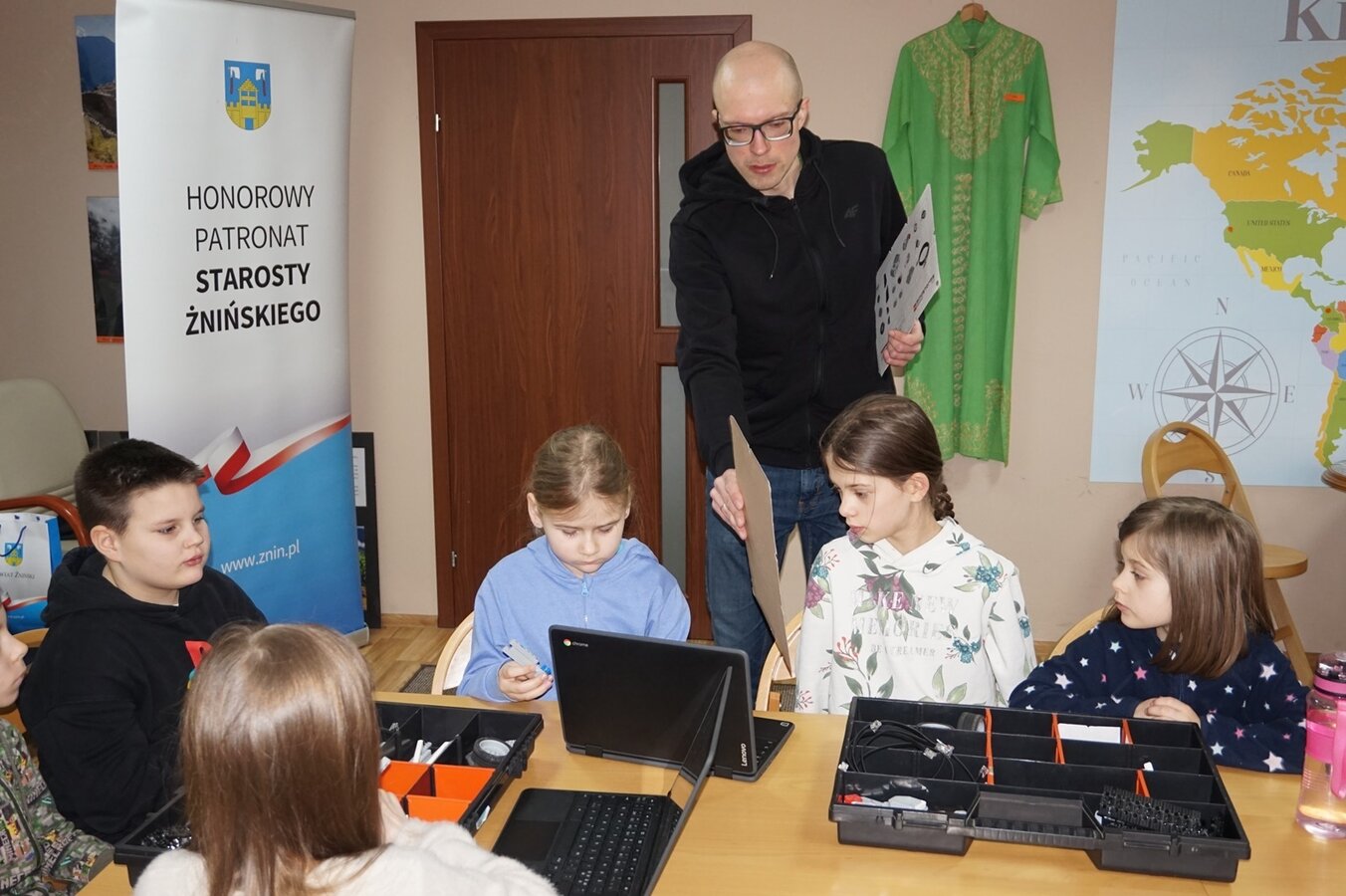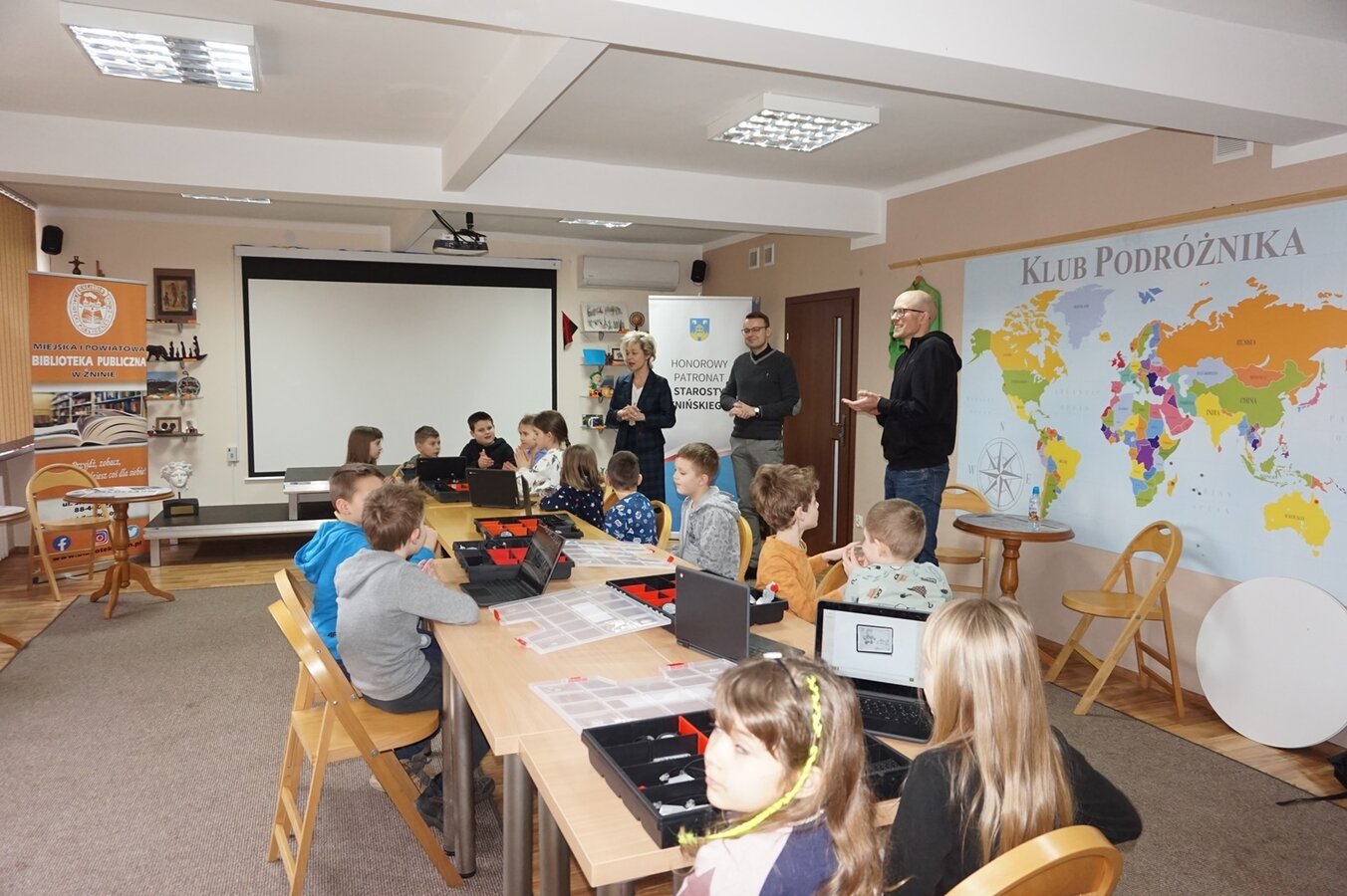 Młodych instruktorów powitali Beata Czaczyk – dyrektor biblioteki oraz Łukasz Kwiatkowski - kierownik Wydziału Promocji i Rozwoju lokalnego Starostwa Powiatowego w Żninie. Zajęcia poprowadził Hubert Pściuk z Poznania. Podsumowaniem warsztatów będzie wyjazd do Centrum Nauki Kopernik w Toruniu.