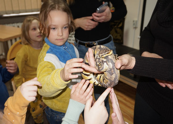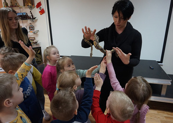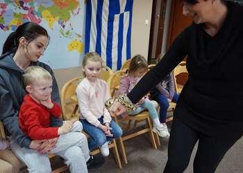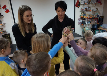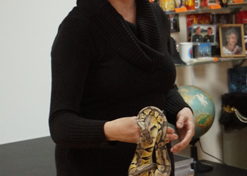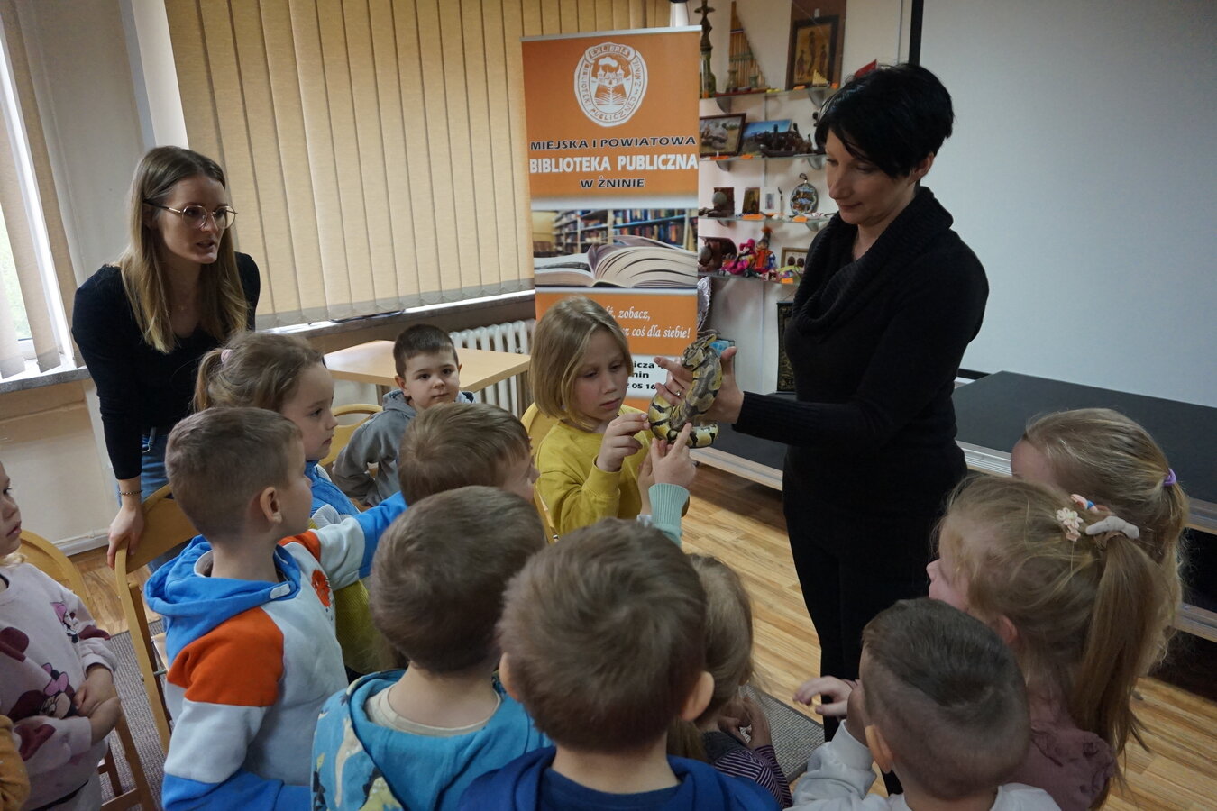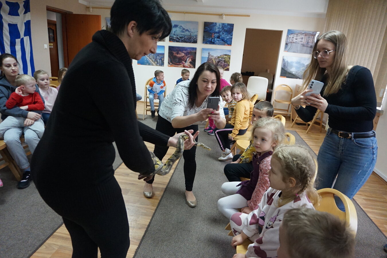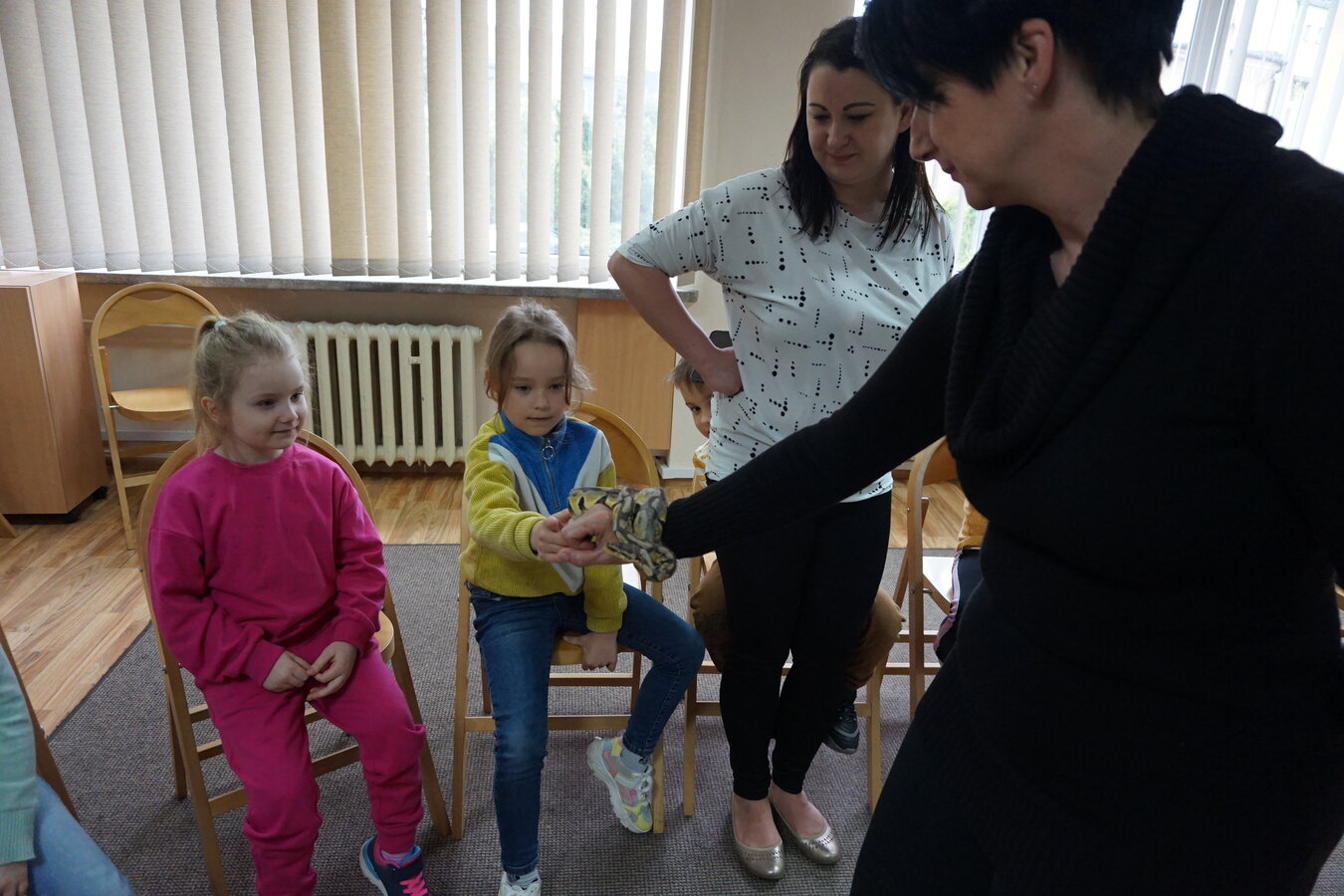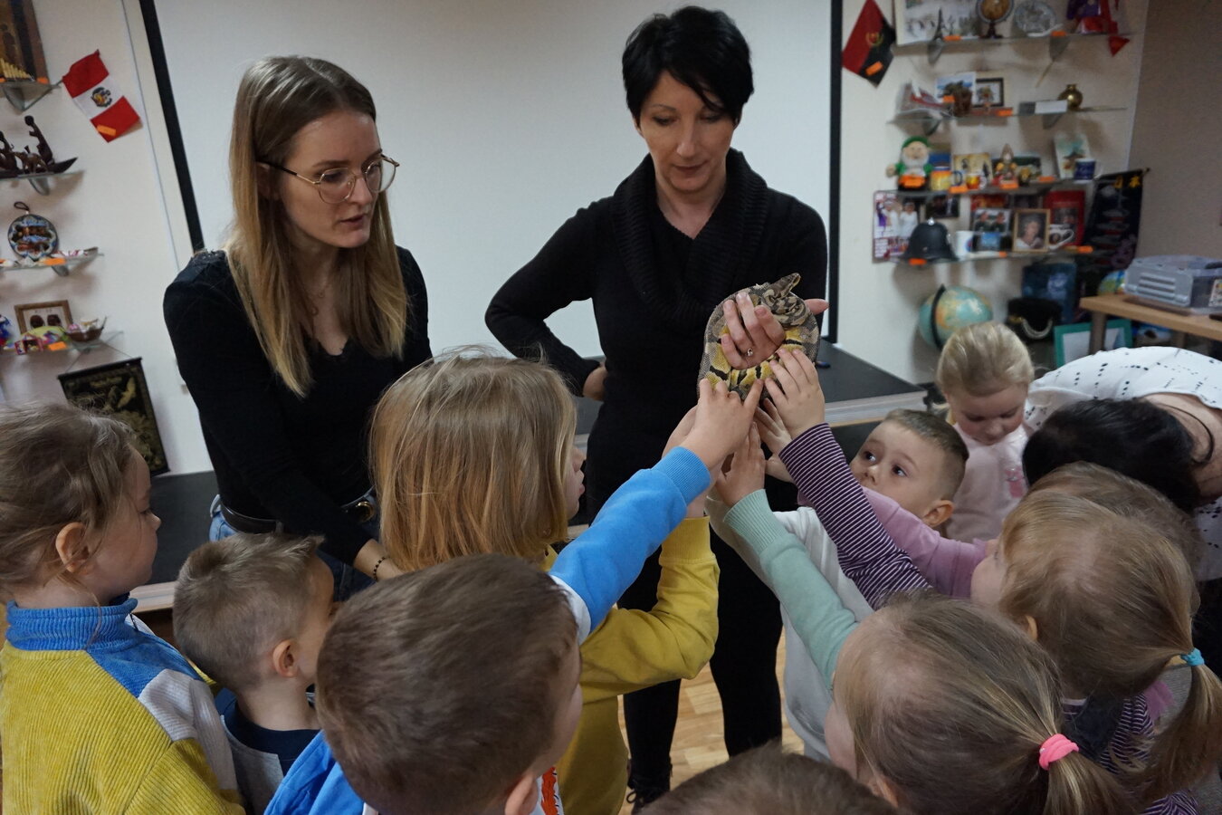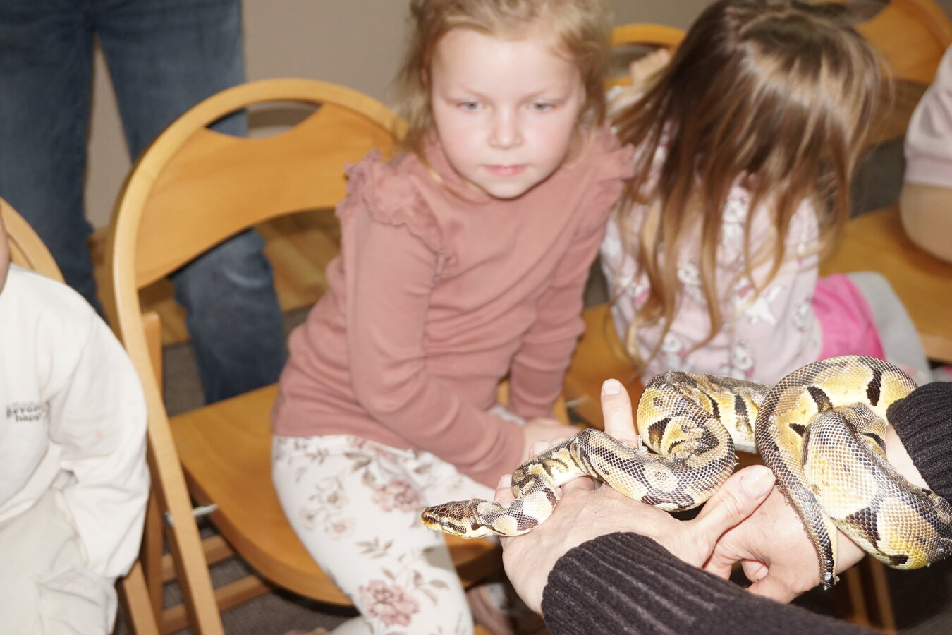 Tym razem pani Ania opowiedziała dzieciom o wężach, a gościem spotkania był pyton królewski o imieniu Duduś.