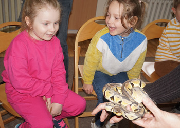 Maluchy mogły z bliska węża nie tylko zobaczyć, ale nawet go dotknąć. Odważnych zaś nie brakowało.
