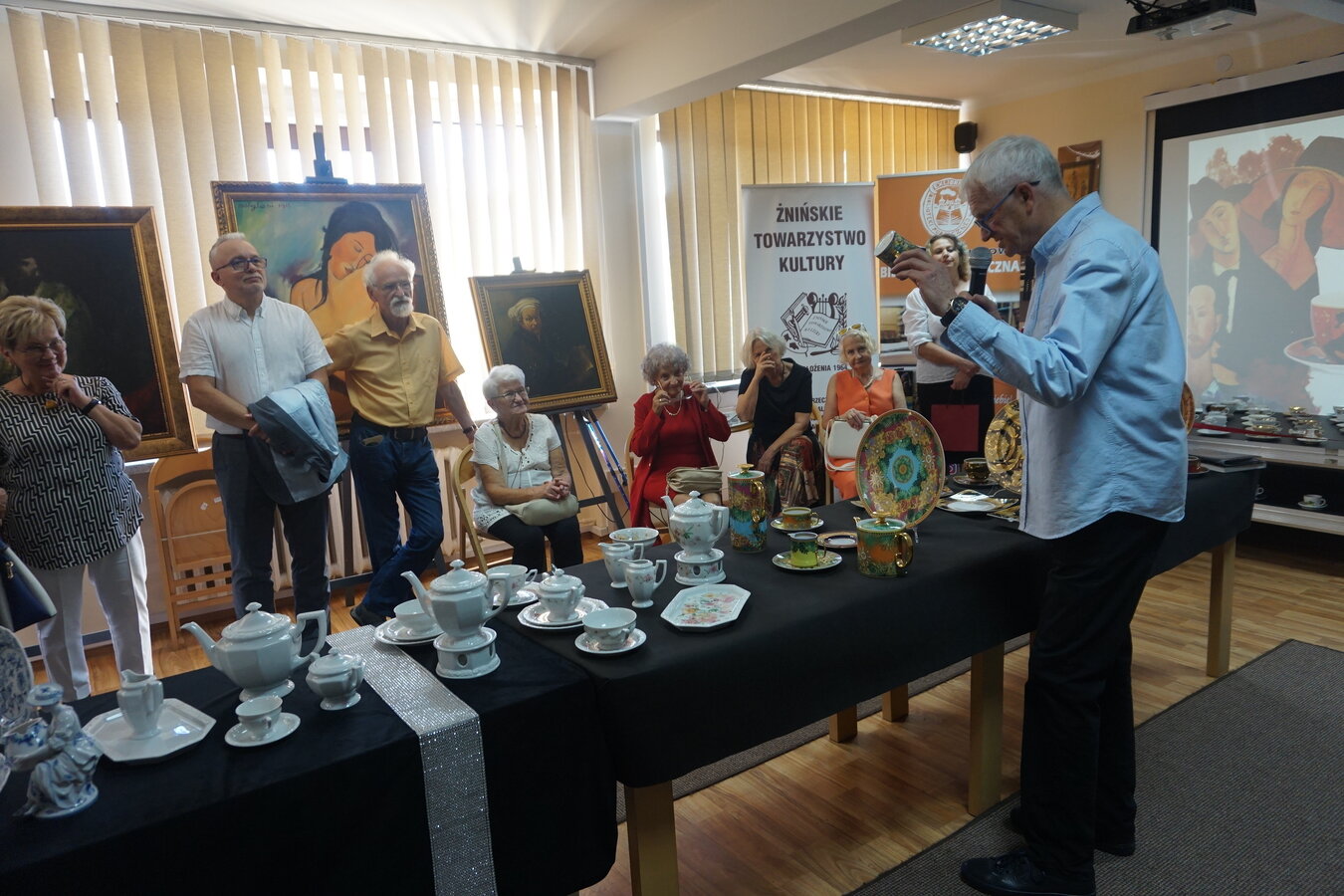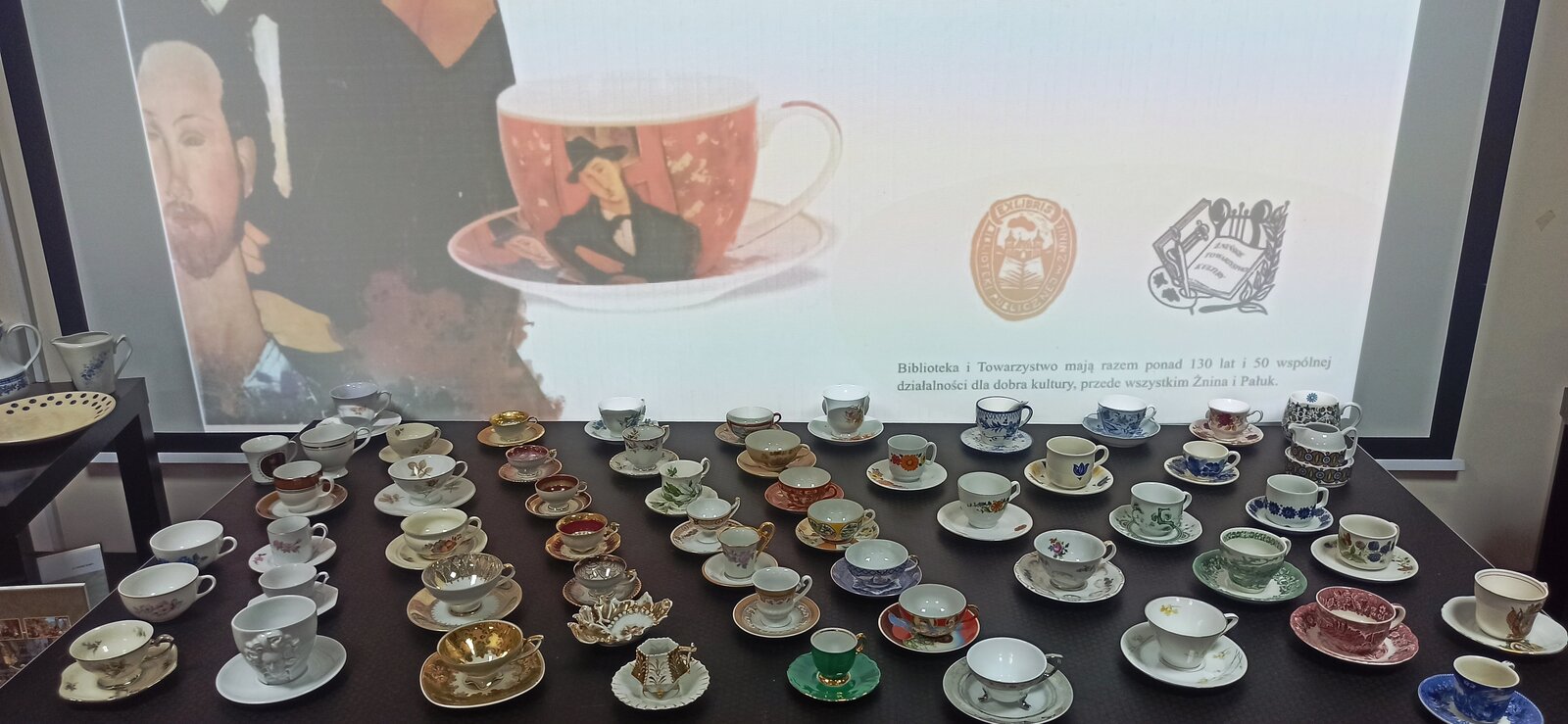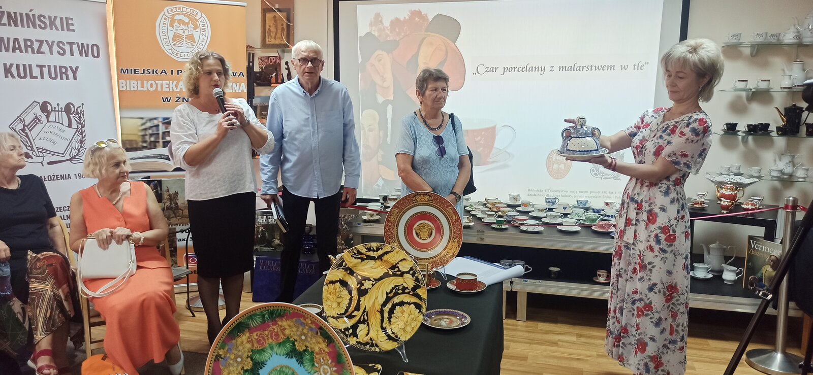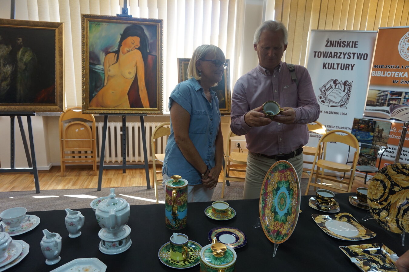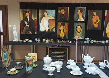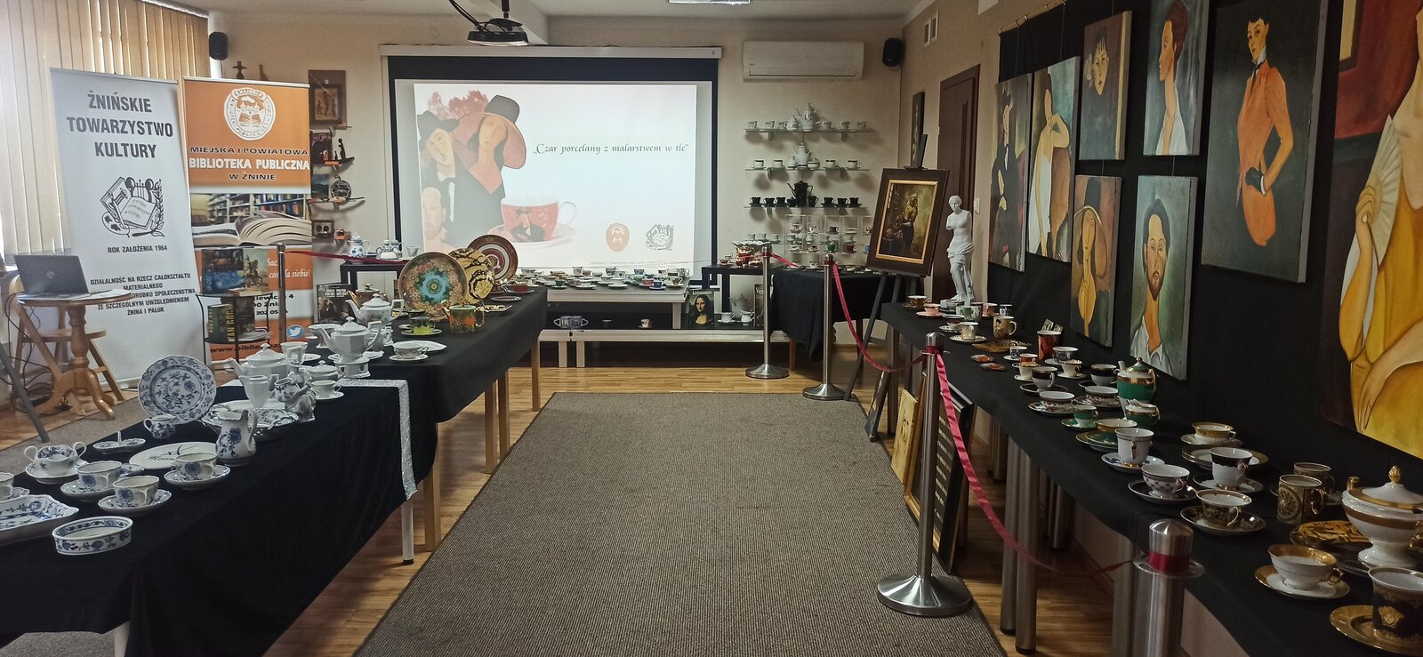 Można było oglądać porcelanę z prywatnych kolekcji Stefana Czarneckiego - Prezesa Żnińskiego Towarzystwa Kultury oraz Barbary Filipiak - pracowniczki Książnicy, a przy tym cieszyć oko reprodukcją obrazów malarzy znanych w świecie i cieszących się popularnością m. in. Modiglianiego, które namalował Żninianin Marek Koziński.