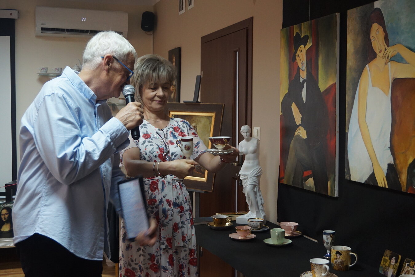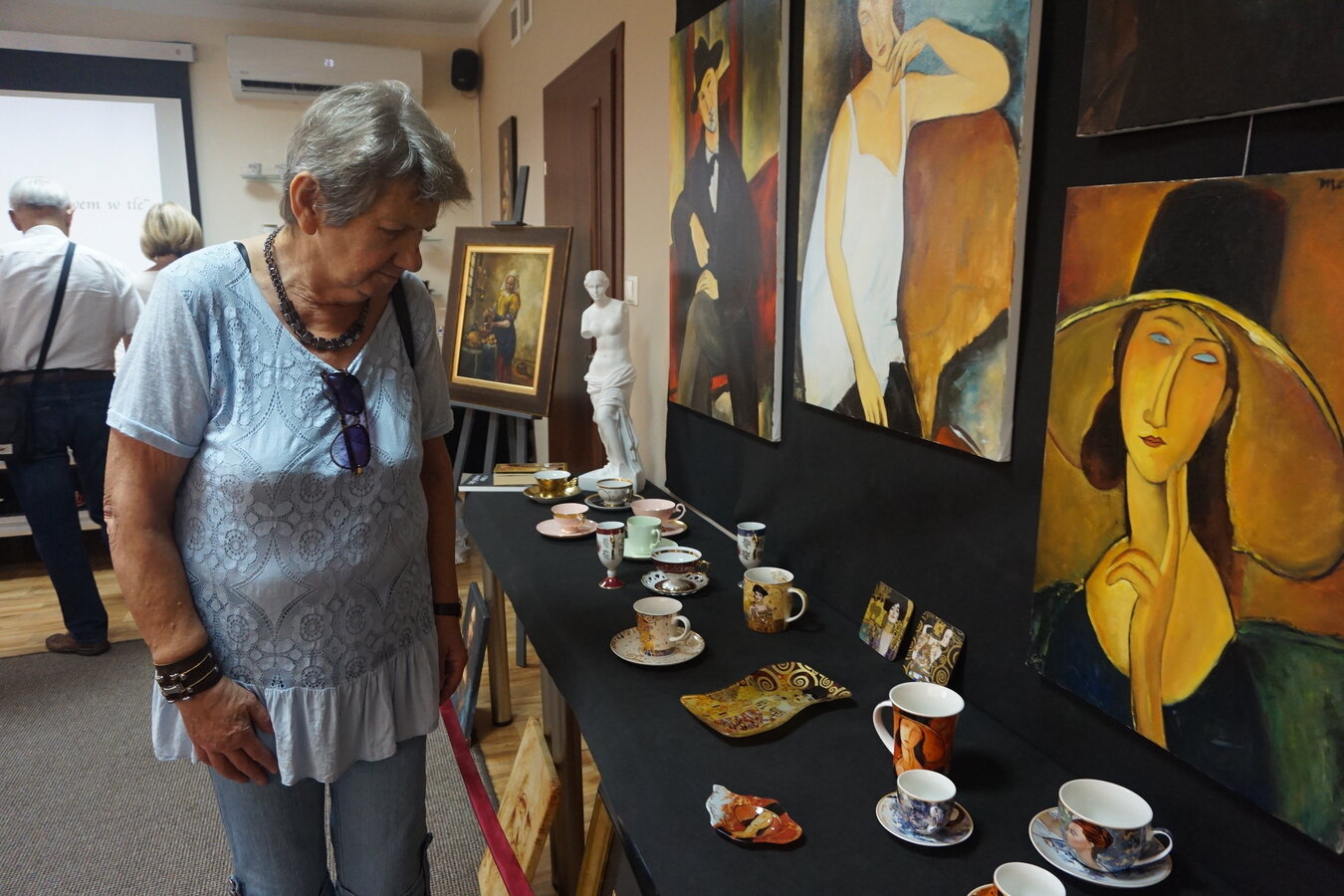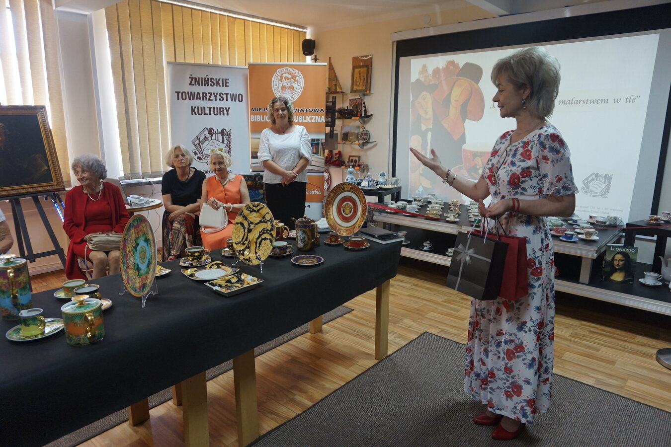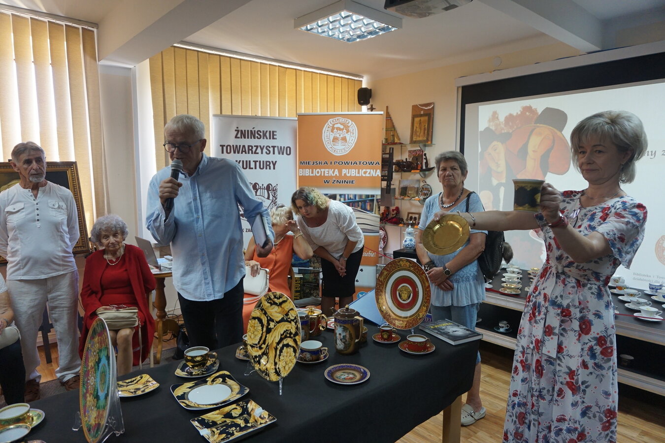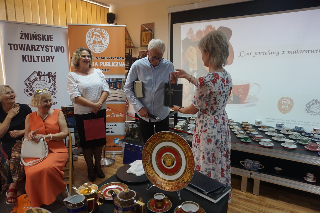 Można było oglądać porcelanę z prywatnych kolekcji Stefana Czarneckiego - Prezesa Żnińskiego Towarzystwa Kultury oraz Barbary Filipiak - pracowniczki Książnicy, a przy tym cieszyć oko reprodukcją obrazów malarzy znanych w świecie i cieszących się popularnością m. in. Modiglianiego, które namalował Żninianin Marek Koziński.