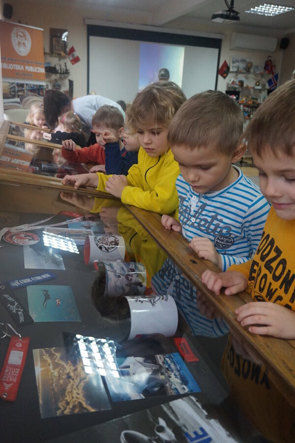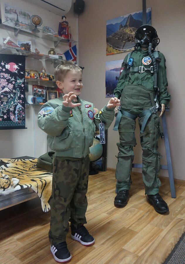Tym razem swoją kolekcję gadżetów związanych z lotnictwem zaprezentował zgromadzonym 5-letni Stasiu Sopiński - przedszkolak z Niepublicznego Przedszkola "U Boba". Po wystawie, (na którą składają się naszywki "patche" związane z lotnictwem, plakaty, kubki, czapeczki) oprowadził zaproszonych przedszkolaków z przedszkola "U Boba" sierżant Grzegorz Kruszwicki - technik samolotu z 31 Bazy Lotnictwa Taktycznego im. kpt. pil. Franciszka Jacha w Poznaniu. Podczas tych bardzo interesujących opowieściach o lotnictwie, pilotach oraz zgromadzonych zbiorach, towarzyszył panu Grzegorzowi sam bohater wystawy, czyli właściciel kolekcji - Staś Pan Grzegorz przywiózł ze sobą również manekina, nazywanego żartobliwie w przez ekipę F-16 Tiger Demo Team Poland "Grażynką", który to prezentuje pełne umundurowanie pilota myśliwca. Podczas wystawy zgromadzeni mogli obejrzeć zdjęcia Stasia m.in. z jego wyjazdów na różne zloty i pokazy lotnicze oraz filmy prezentujące możliwości najnowocześniejszych samolotów.