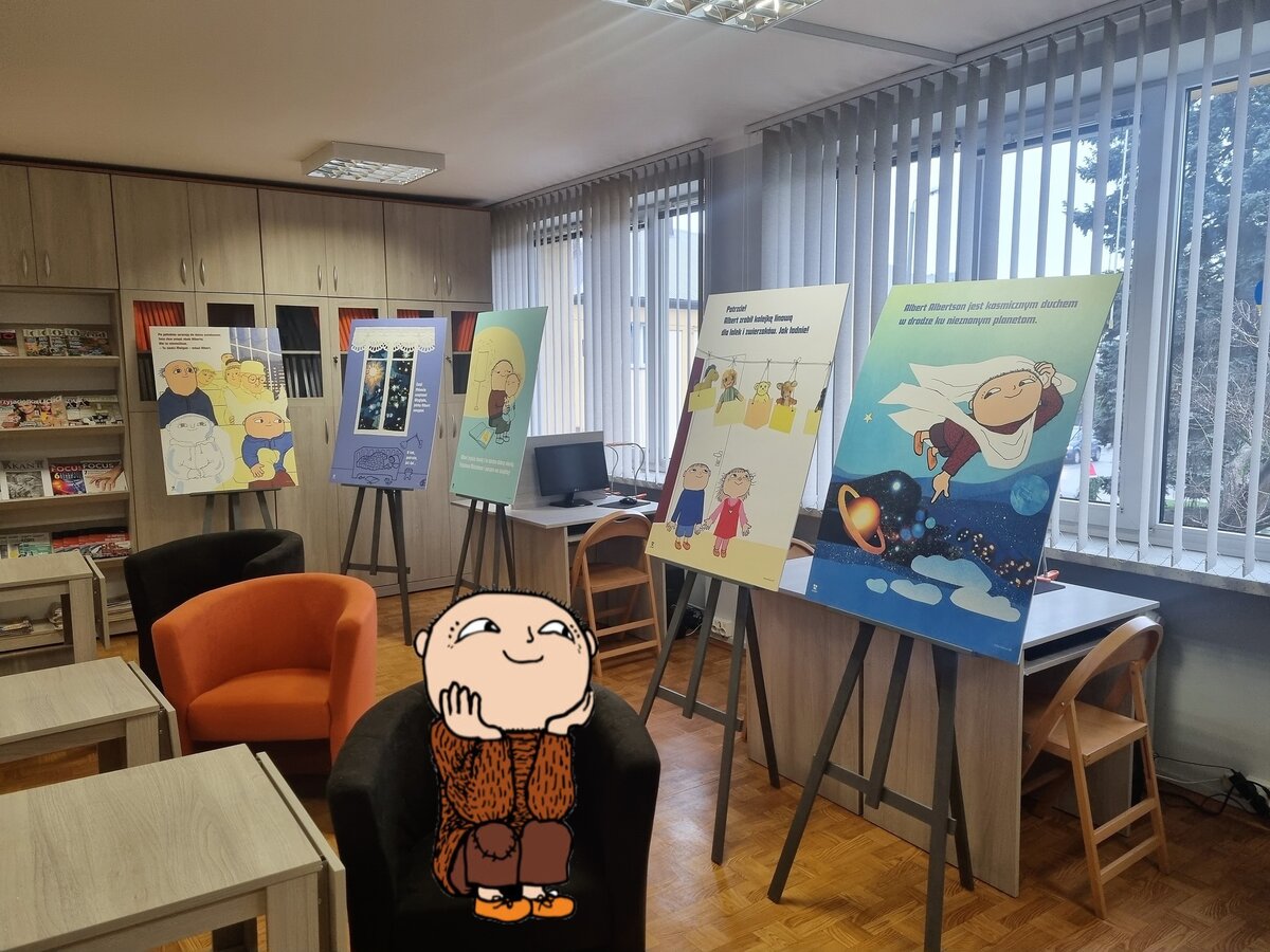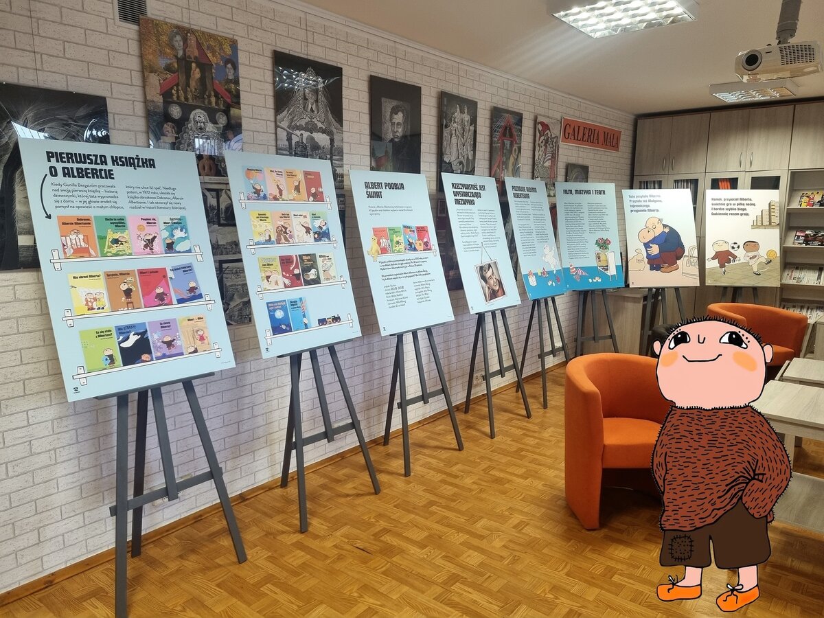 Od dzisiaj w czytelni można oglądać wystawę Wydawnictwa Zakamarki dotyczącą serii książeczek dla najmłodszych o Albercie Albertsonie.