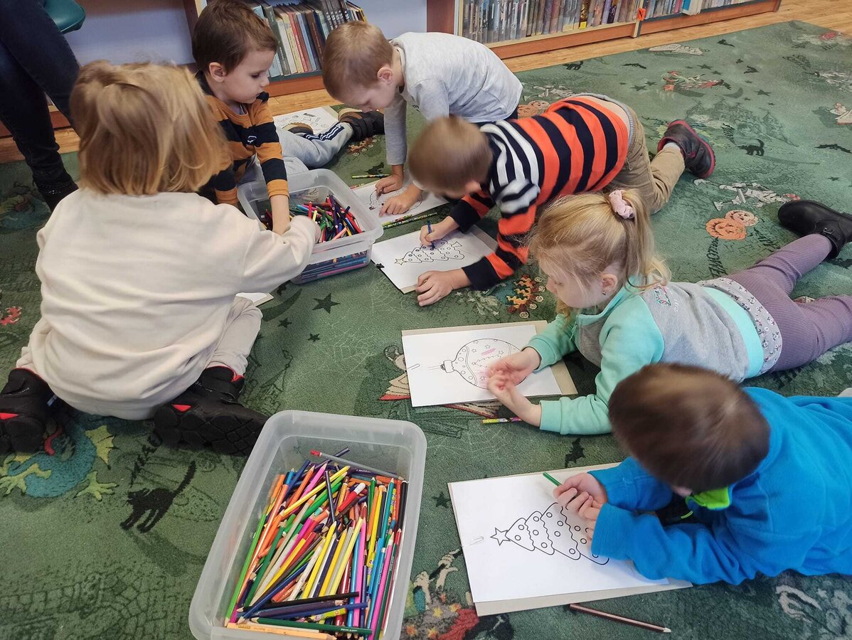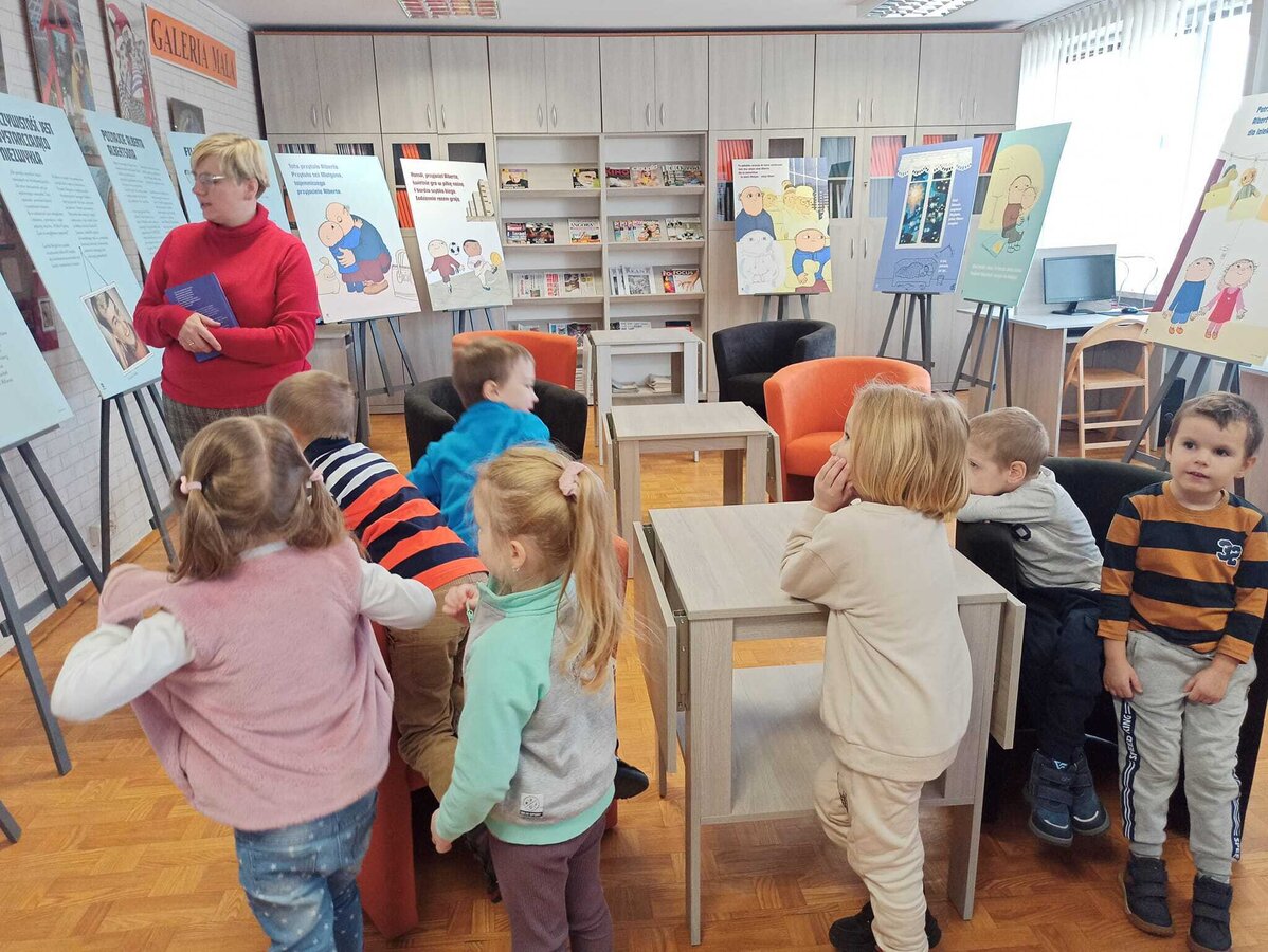 Tym razem, 12 grudnia do naszej biblioteki zawitała grupa Zajączków z przedszkola ,,U Boba”. Rozmawialiśmy o Świętach Bożego Narodzenia, o panujących tradycjach oraz o tym jak wygląda ich obchodzenie w domu u każdego z nas . Dzieci miały okazję wysłuchać kilku opowiadań dotyczących Wigilii oraz pokolorować obrazki ze świątecznym motywem. Zwiedziliśmy również wystawę Wydawnictwa Zakamarki dotyczącą Alberta Albertsona, gdzie dowiedzieliśmy się więcej o małym urwisie Albercie i samej autorce książek.