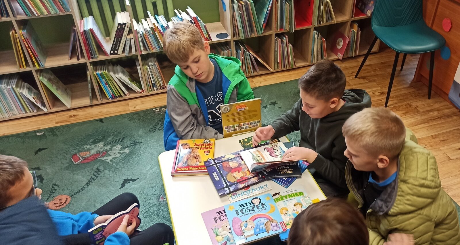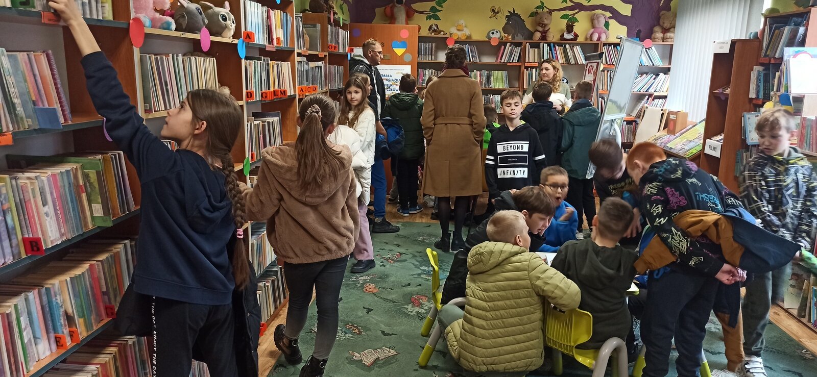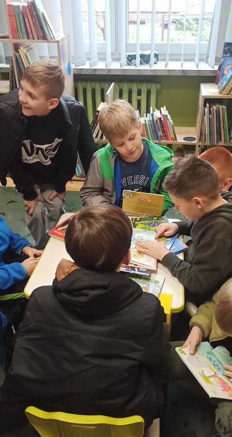 Odwiedziny w bibliotece stały się również okazją do przeprowadzenia krótkiej lekcji bibliotecznej, dzięki której dzieci dowiedziały się jak zapisać się do biblioteki i jaka jest jej oferta.