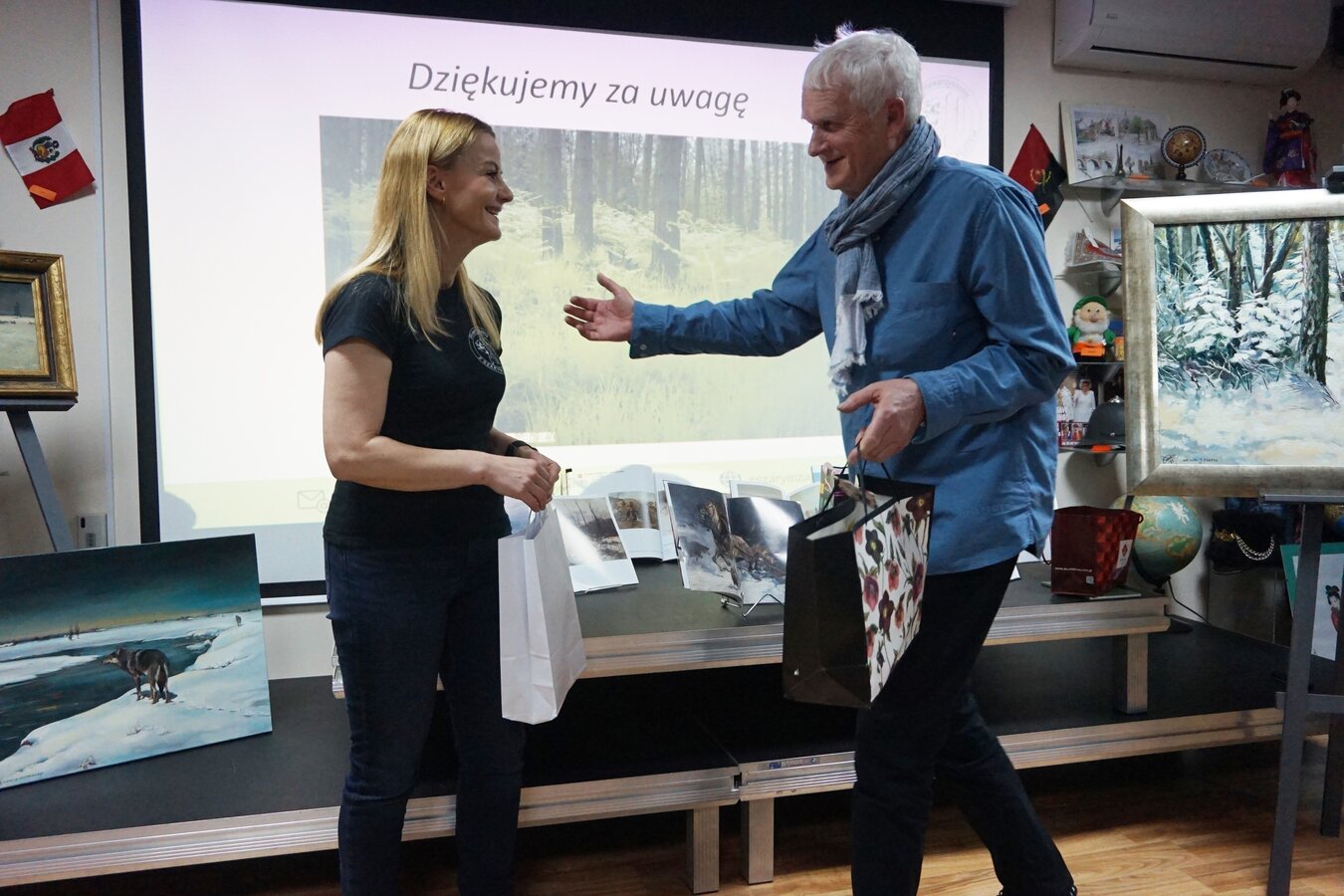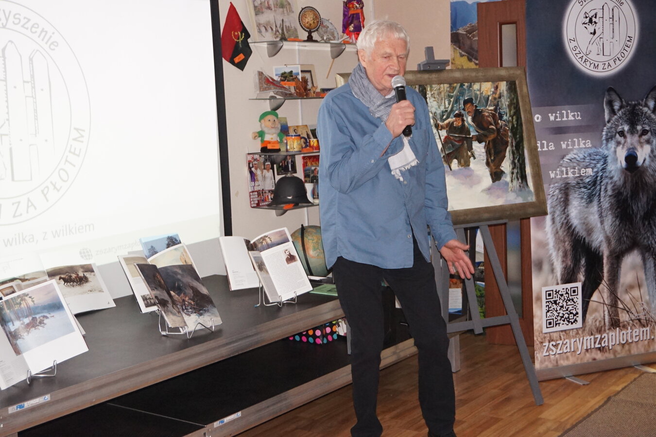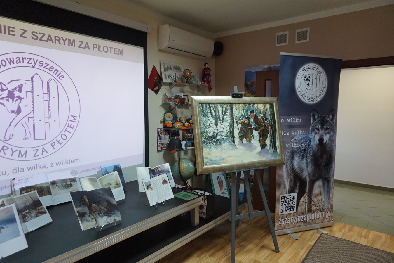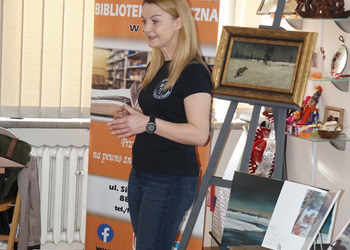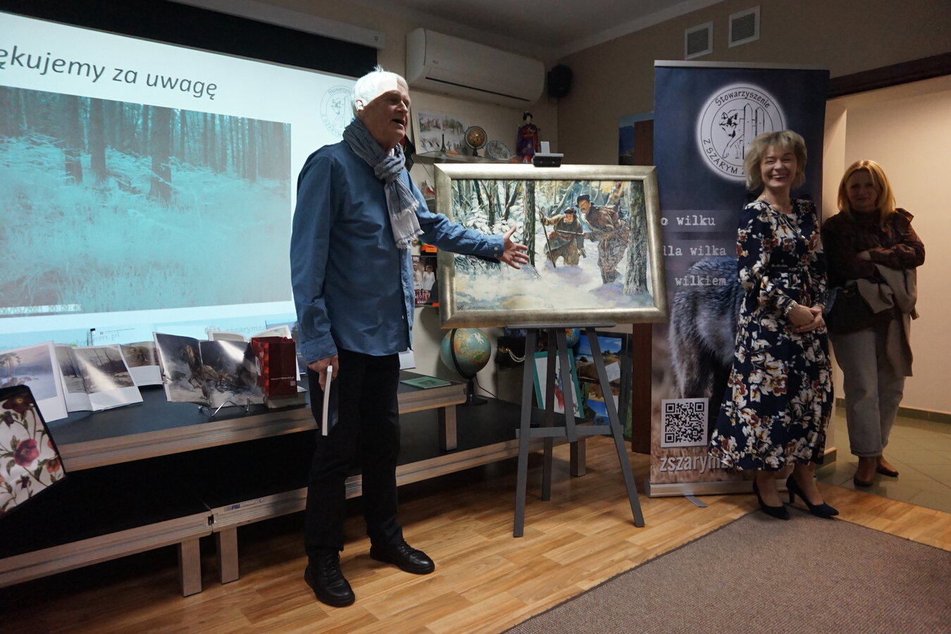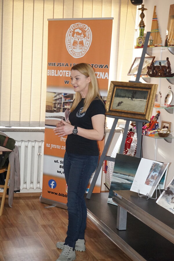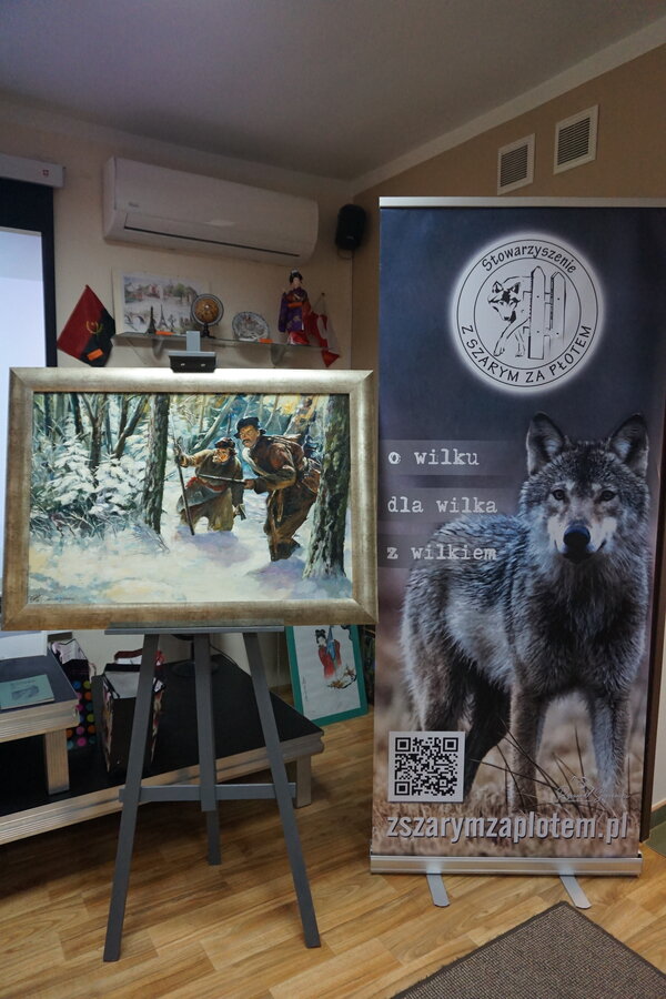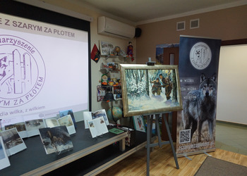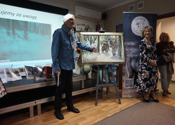 Wilki fascynowały poetów, pisarzy i malarzy od wieków, stad też spotkaniu w bibliotece towarzyszyła nie tylko wystawa tematyczna książek ale również obrazów autorstwa Alfreda Wierusza-Kowalskiego i Marka Kozińskiego.